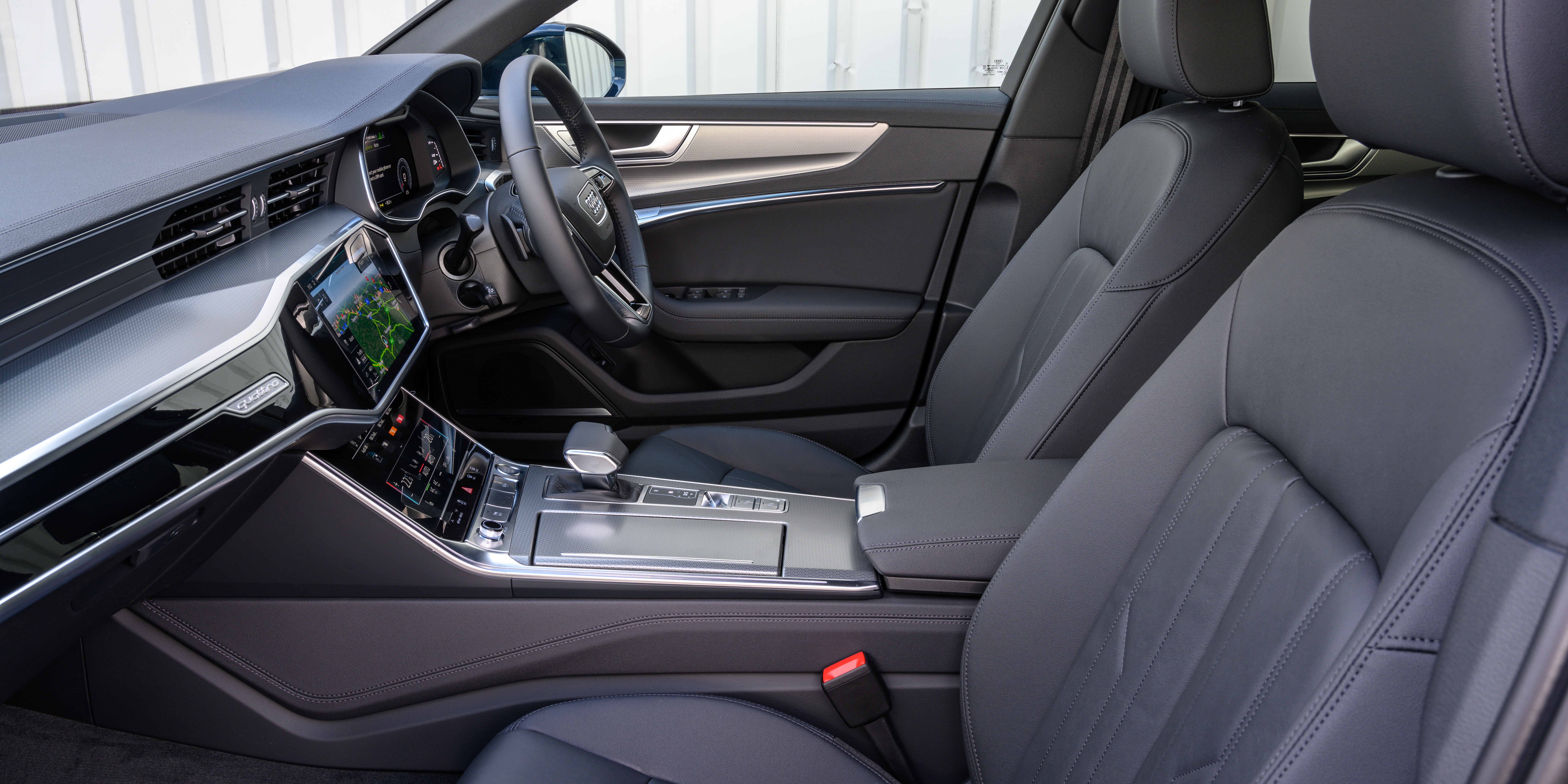 Inside, it’s business as usual, so there’s the same uber-plush interior as the standard A6 Avant and you get a triple-screen infotainment system with Audi’s signature Virtual Cockpit digital driver’s display.