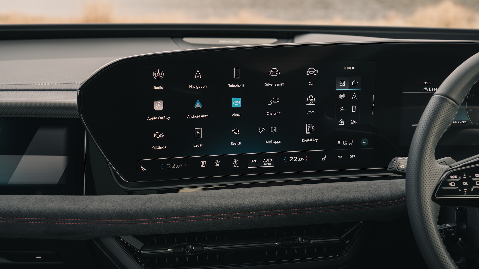 Inside, it’s just like the Q6 e-tron, but without the commanding SUV driving position. In fact, you sit quite low for an electric car, with a very high-tech dashboard ahead of you. All versions get a driver information display and a huge centre touchscreen, but top-spec models can have as many as four screens with a head-up display as well as a separate screen for the passenger to watch movies or play with settings on.