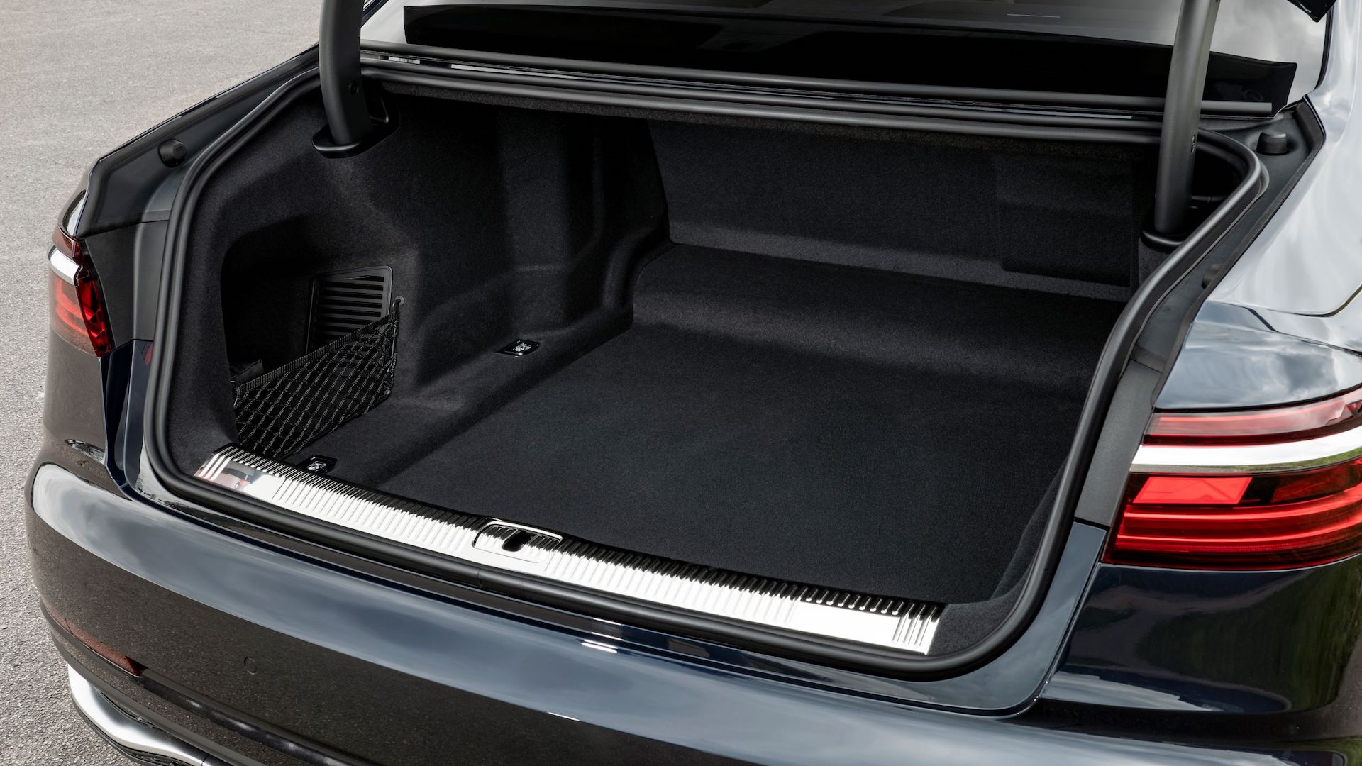 The A8 is a big car – measuring more than five metres long. Audi quotes the boot area at 505 litres, which puts it slightly down on the S-Class’s 550 litres. The BMW 7 Series splits the difference at 525 litres in the plug-in hybrid (or 500 litres in the electric i7).