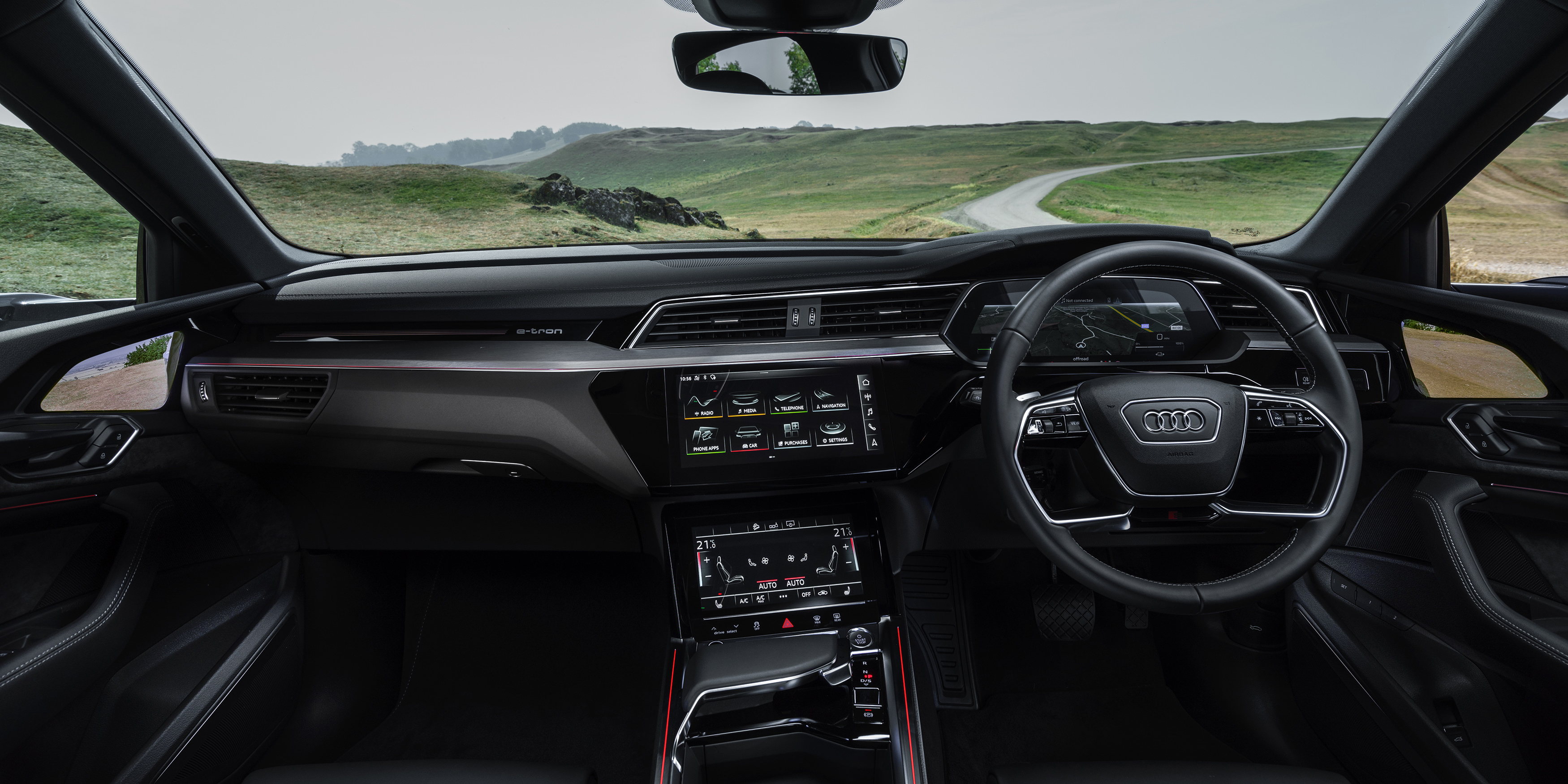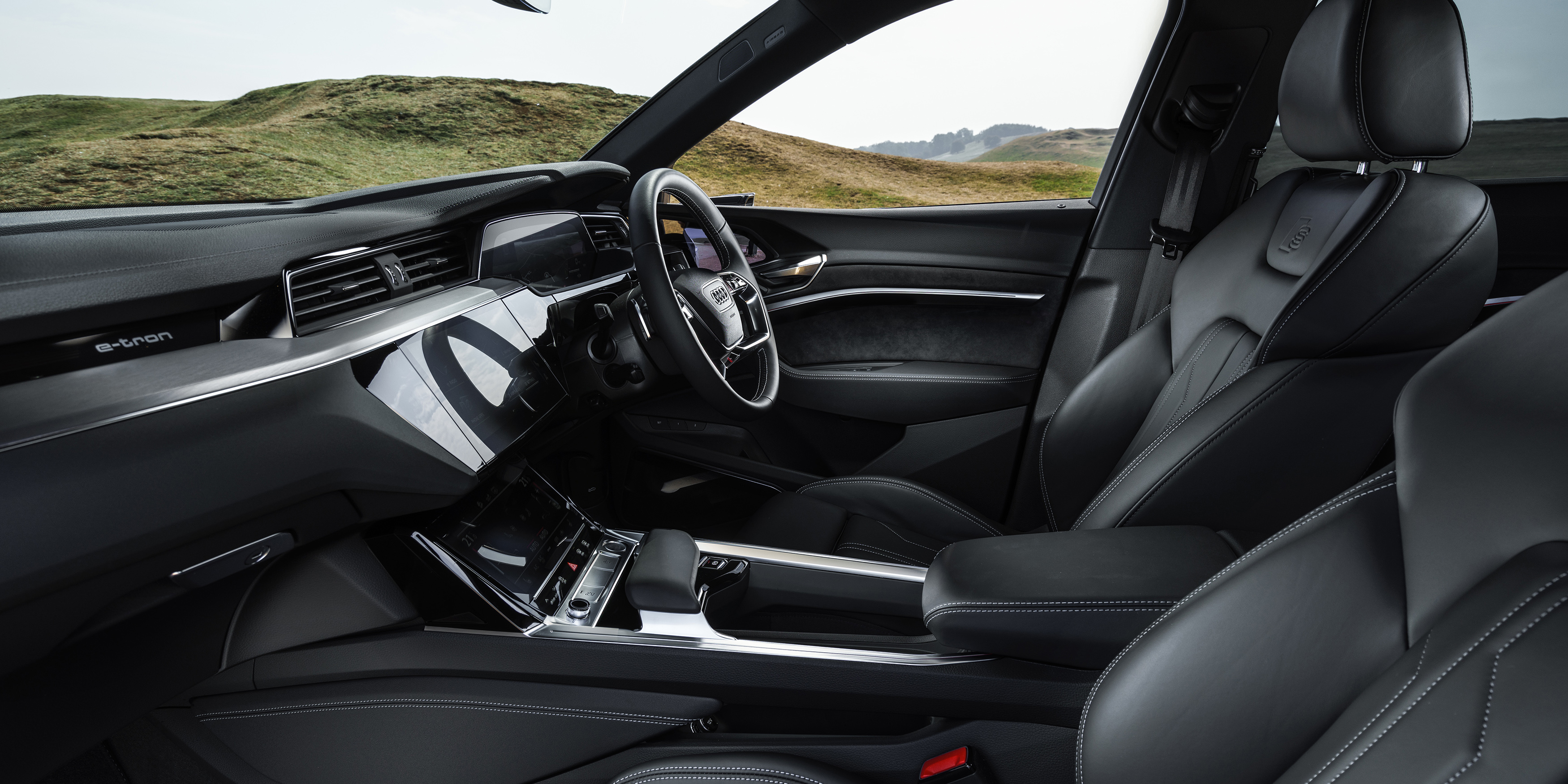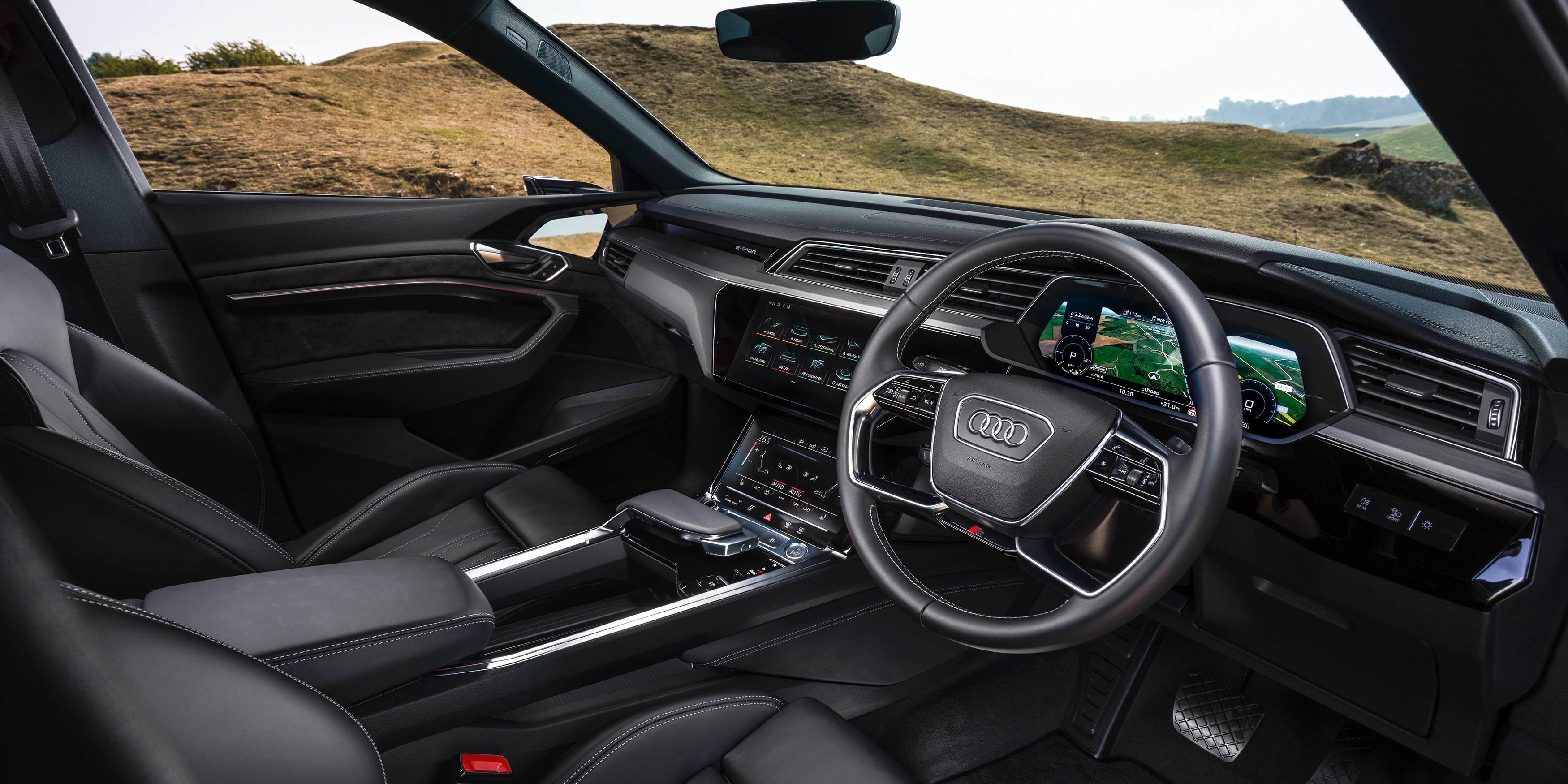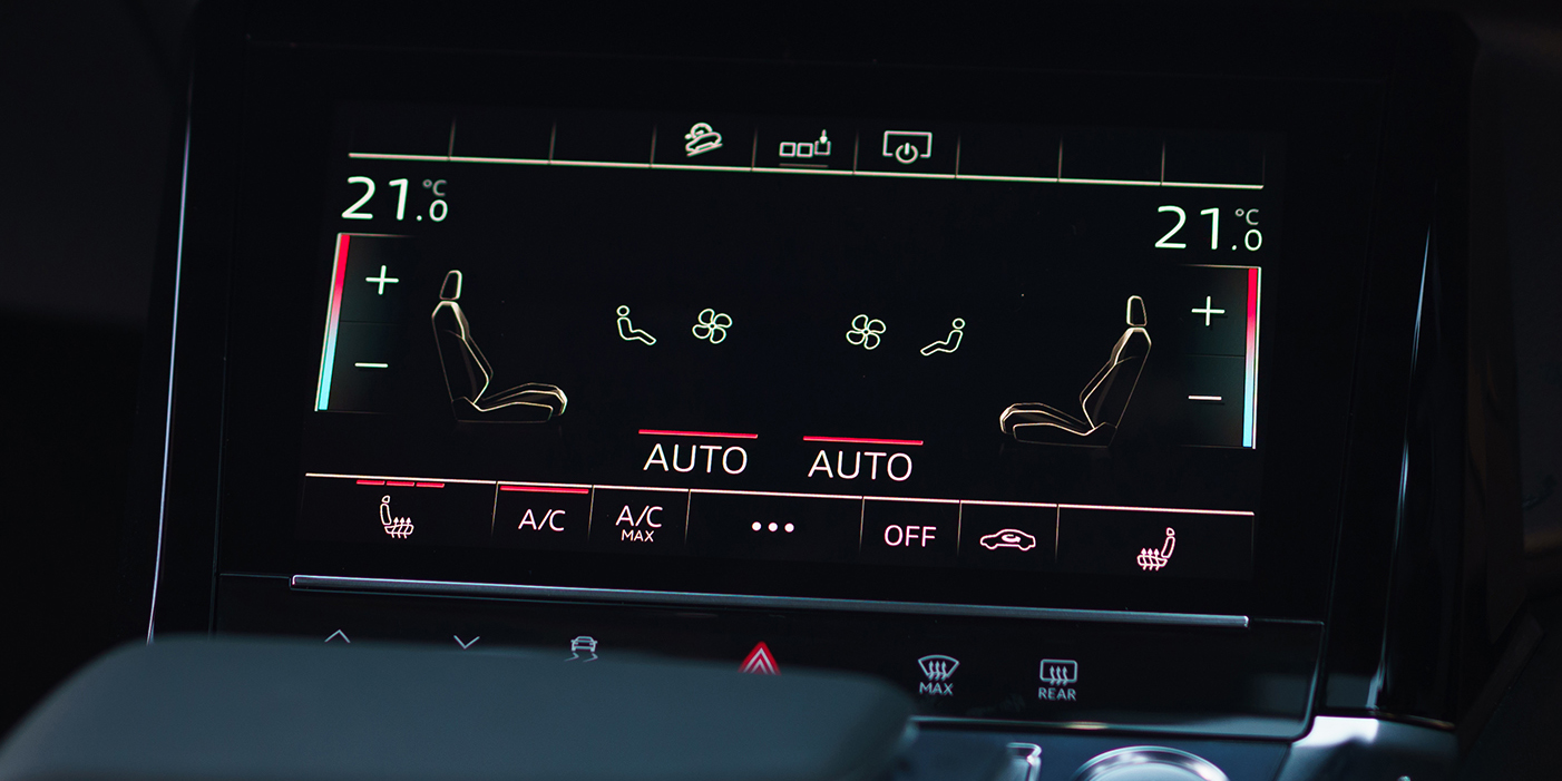 One of the screens controls the ventilation system, and it’s pretty decent, although conventional buttons like those found in the e-tron GT saloon would be easier to operate on the move.