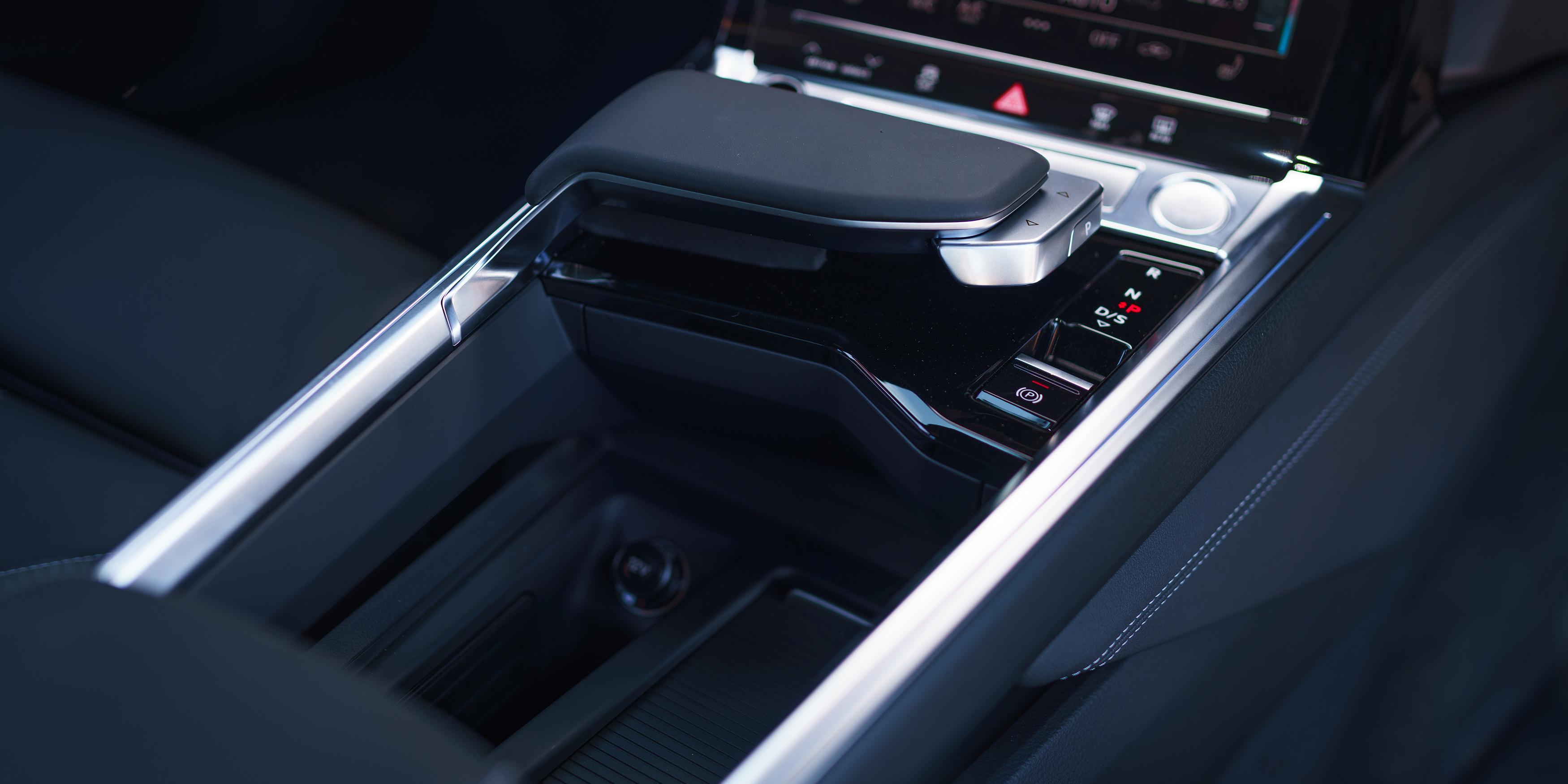 Audi is known for quality interiors and the e-tron Sportback is no exception. The centre console is well equipped with plenty of storage space, wireless charging and cupholders.