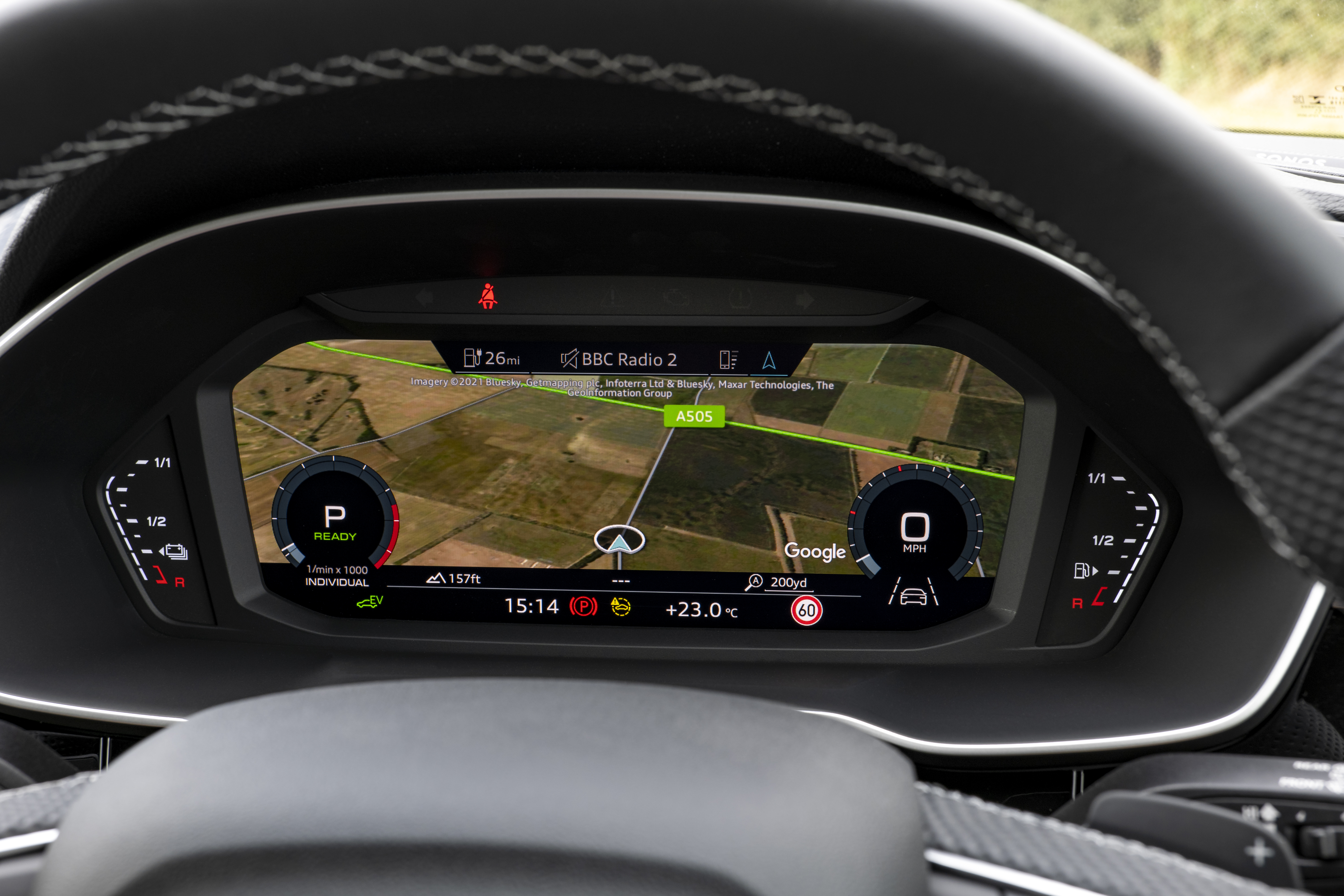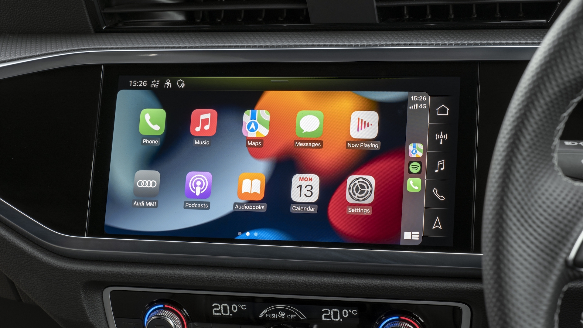 The Q3’s 10.1-inch touchscreen display and the infotainment system it controls work well. The screen looks crisp and responds promptly, and navigation through the menus is straightforward. Features include sat-nav with 3D mapping, DAB radio, Bluetooth and various apps. Alternatively, connect your phone and use Apple CarPlay or Android Auto.
