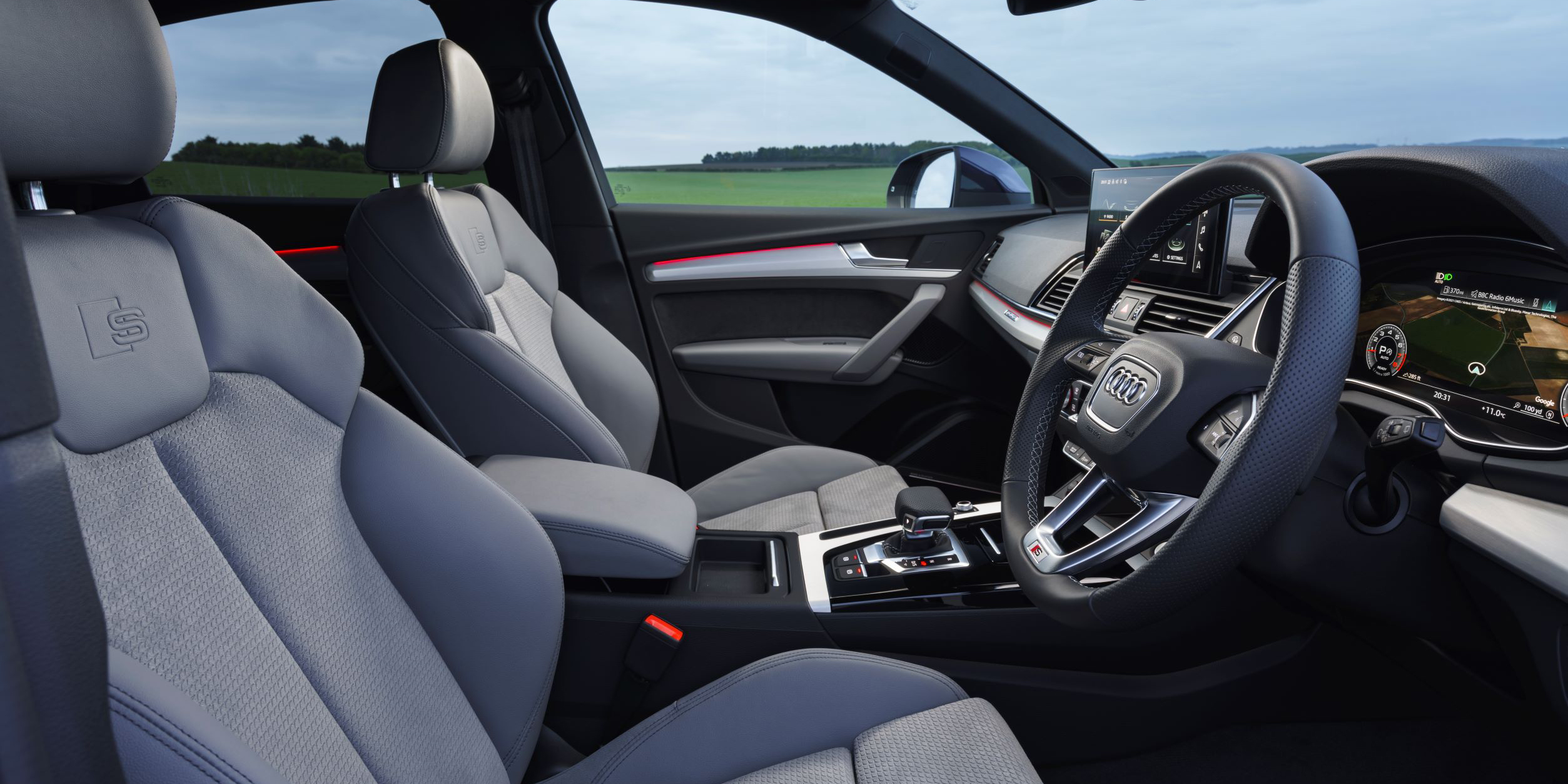 The Audi Q5 Sportback S infotainment screen has crystal clear, colourful graphics that come to life with the car’s Google Maps. You don’t get the swivel screen fitted to Audi’s of old, but the touchscreen is quick and responsive to your commands. And anyway, you can always swap prodding the touchscreen for using the voice activation of your phone via Apple CarPlay or Android Auto.
