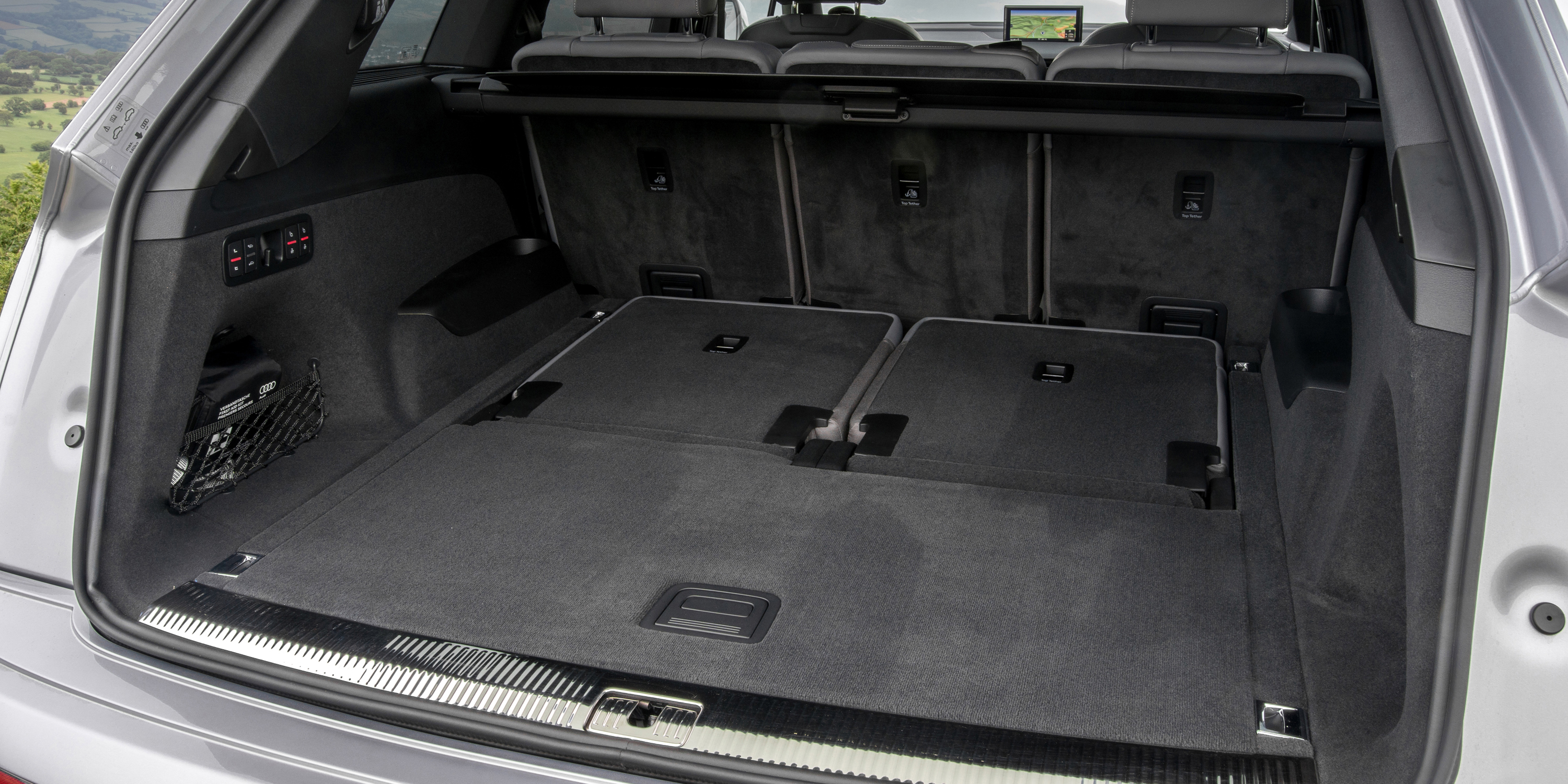 The Audi Q7 has a useful 295-litre boot even with all seven seats in use. It can easily swallow a few bags of shopping. Fold down the back row of seats and the Audi’s capacity increases to 770 litres, which is more than enough for a couple of weeks away with the family. There’s no load lip so you can easily slide heavy items into place and, if you pay £2,000 extra for the Adaptive Air Suspension, the Audi Q7 can even low its rear end to help you load it.