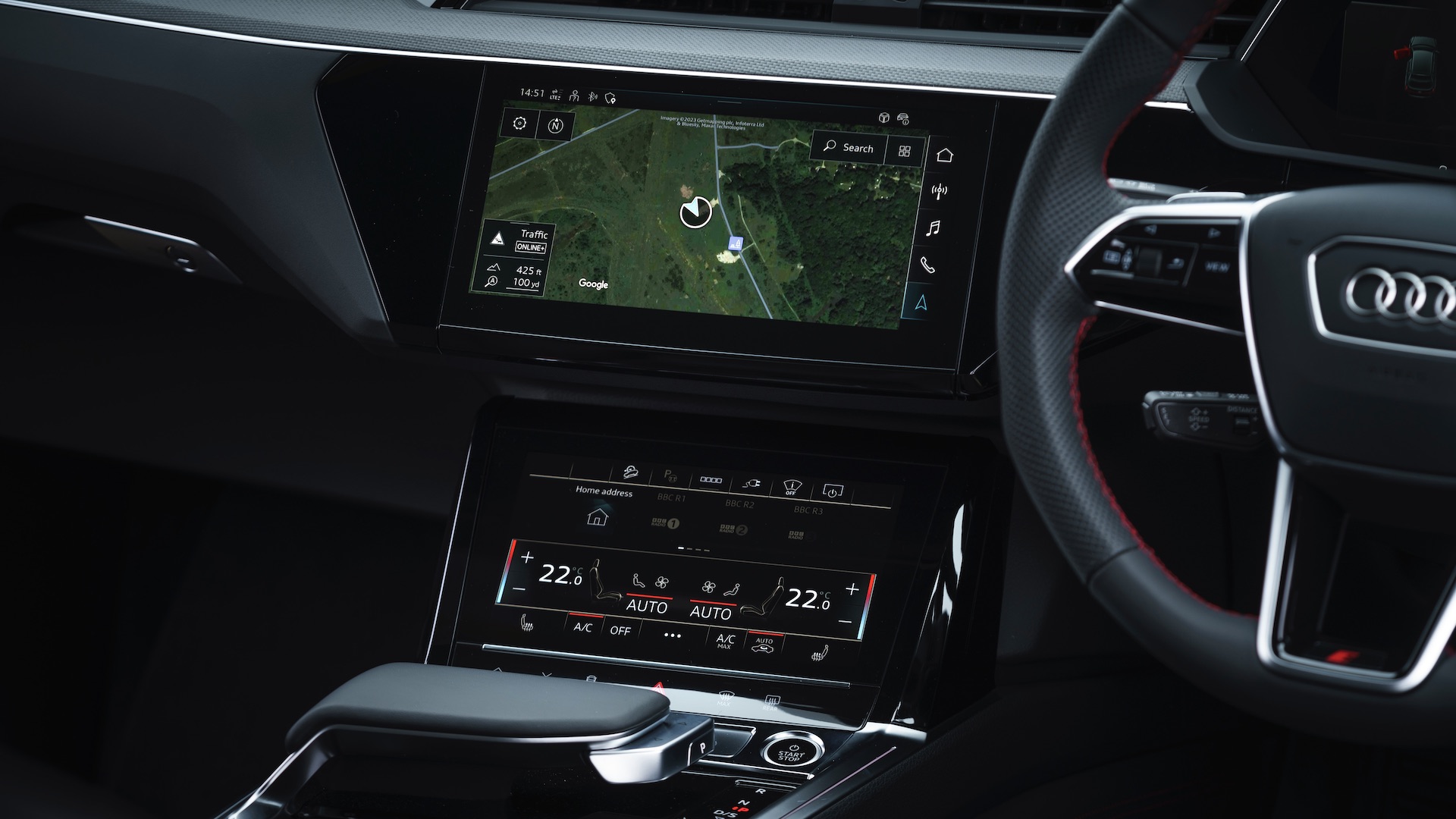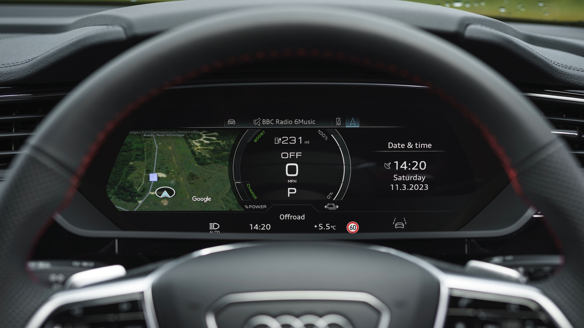 The steering is well-weighted – not the lightest, but good enough to make manoeuvring and parking easy enough. The e-tron gets a rear-view camera as standard with all-round sensors to help with getting around car parks and into spaces, but Vorsprung and Launch Edition models come with cameras instead of wing mirrors.