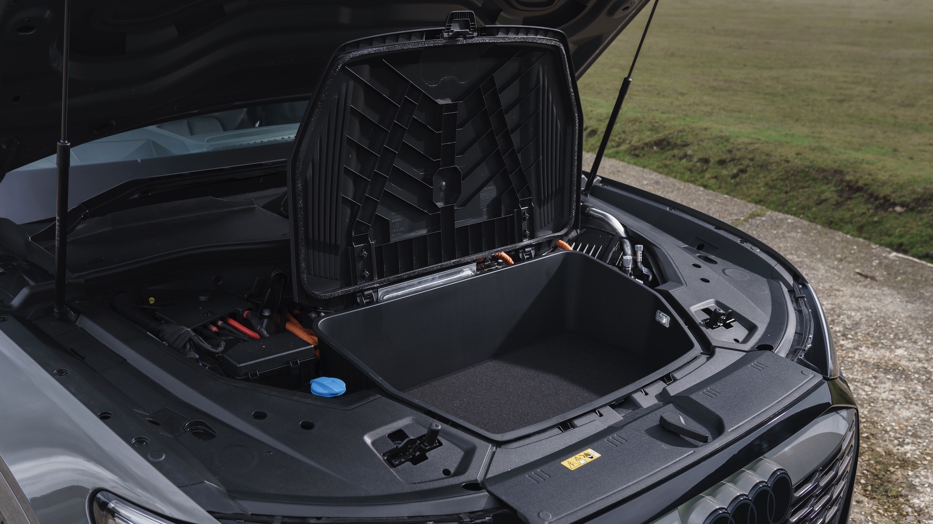 The 569-litre boot in the Q8 e-tron is larger than the one in the BMW iX, but the Volvo EX90 and Mercedes EQS SUV are considerably bigger in their five-seat configurations. Folding the seats down gives you a large, flat space to store things, while there's a space under the bonnet to store your charging cables.