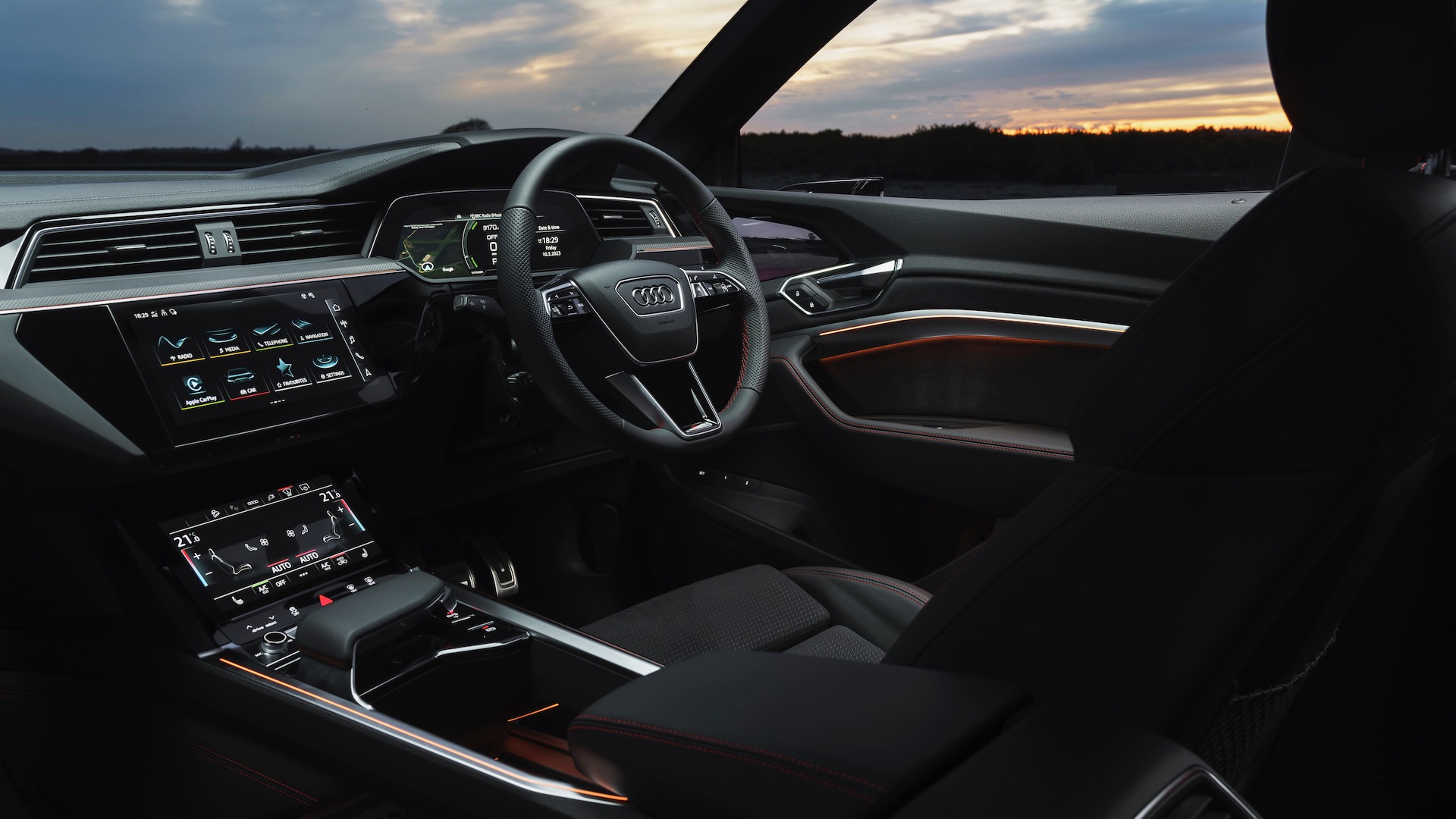 You can fit all the trimmings on your Q8 e-tron. Those include a technology pack – which includes a head-up display, a Bang & Olufsen sound system and advanced parking assist – and the tour pack that adds adaptive cruise control and predictive efficiency assist.