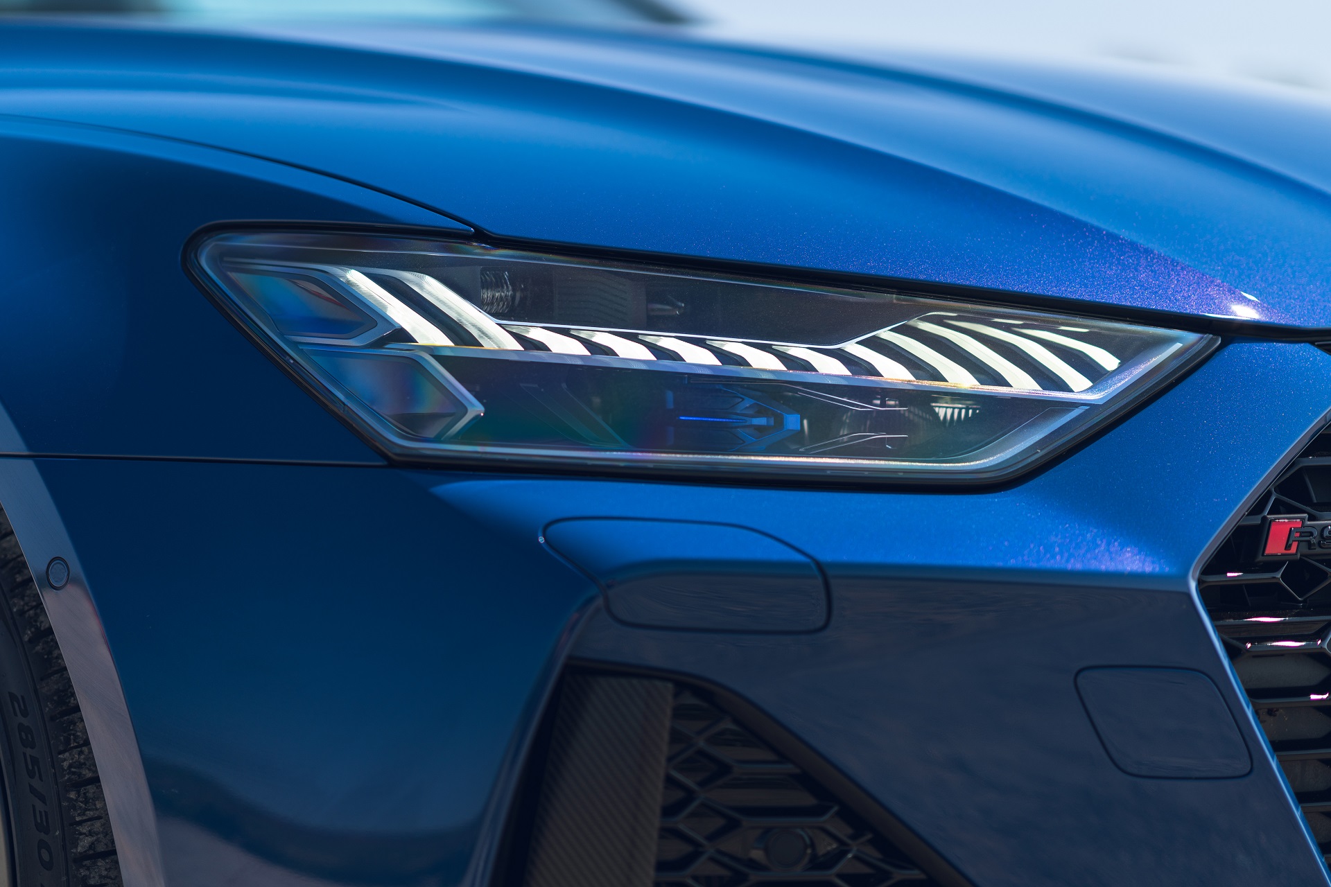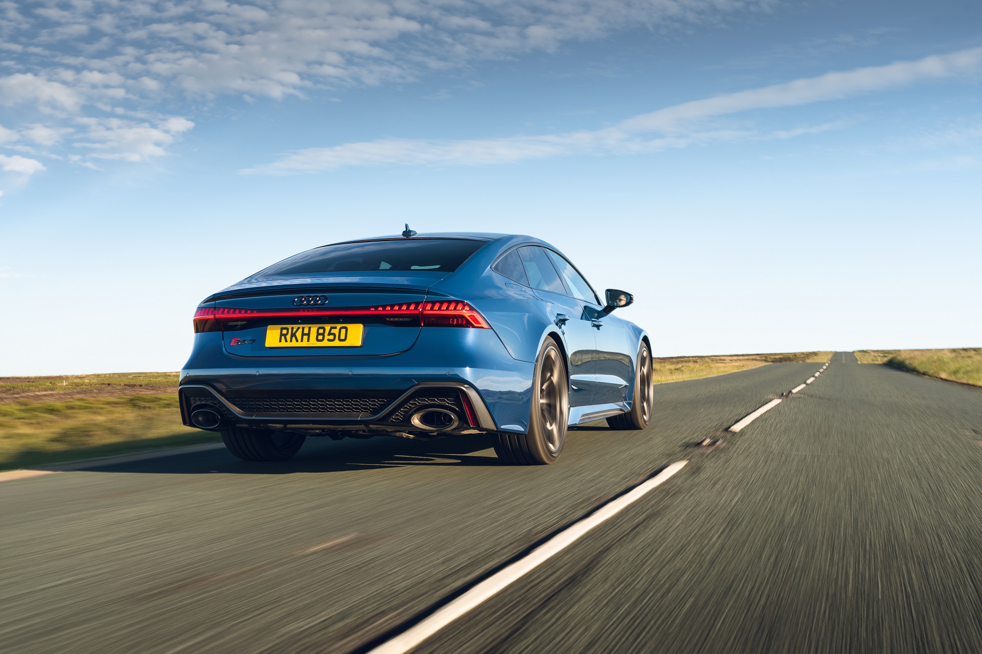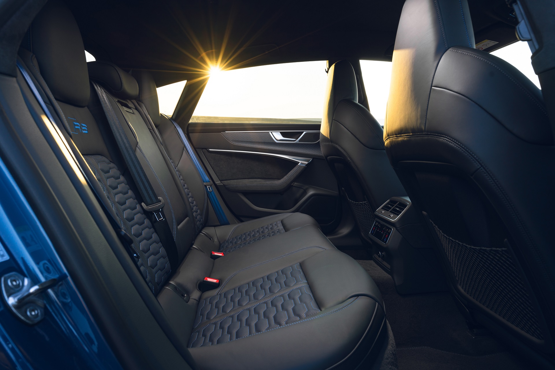 Those massive exhaust tips, for example, are the largest fitted to any Audi RS model and they sit within a completely redesigned rear bumper. Step to the side, and you’ll spot a set of 21-inch alloy wheels that cover beefier brakes and sit within wider wheel arches. In fact, only the bonnet, roof, boot lid and doors are shared with the standard A7 – if you were wondering.