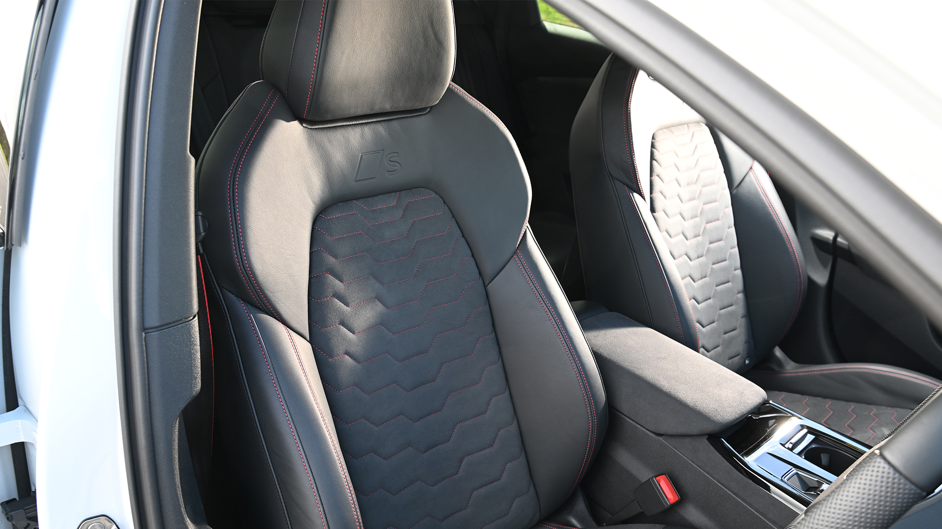 Meanwhile, the touch-sensitive controls on the steering wheel and the door panel feel cheap, and they’re fiddly to use. Proper buttons, please, Audi. Proper quality too, as our test model had already developed a rattle, right by the driver’s ear, in the seatbelt height adjuster.