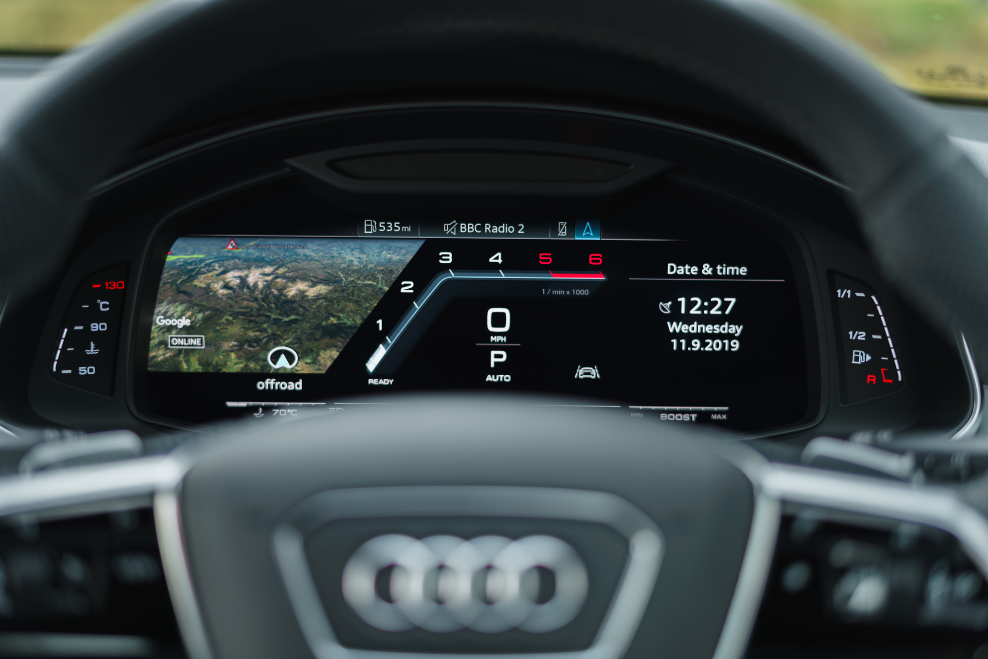 Apart from the racy bits you still get the same beautifully finished cabin as in the normal A7, with an infotainment screen that tucks away into the dashboard when not in use. This, combined with the brushed aluminium buttons, makes the S7’s interior a great place to spend time.