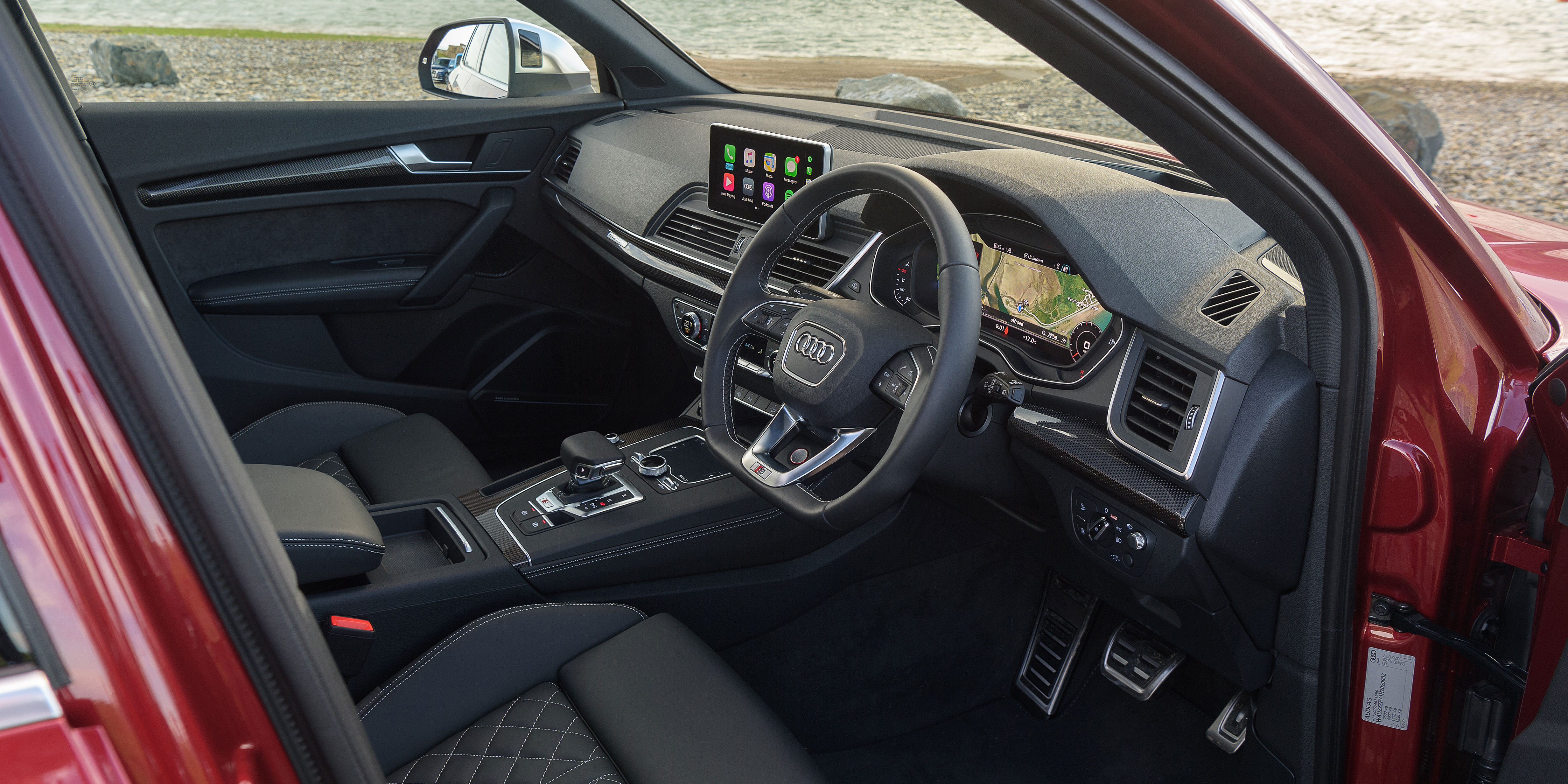 Inside, you’ll find one of the best interiors in the premium SUV market. It’s packed full of high-tech features and everything feels fantastically well built. A set of metal trim pieces, contrasting stitching and highly supportive leather seats make the SQ5 feel significantly more special inside than the standard car.