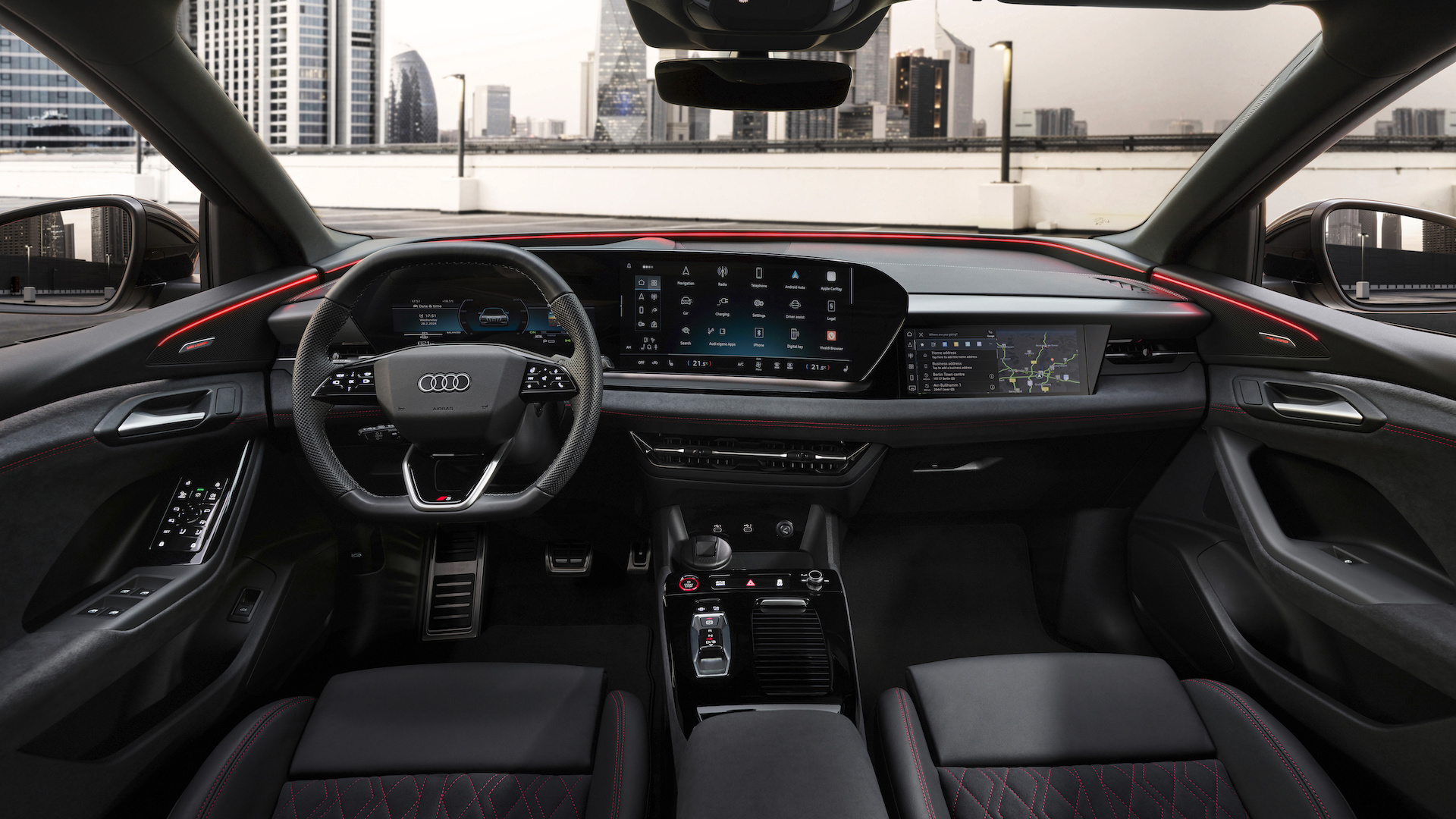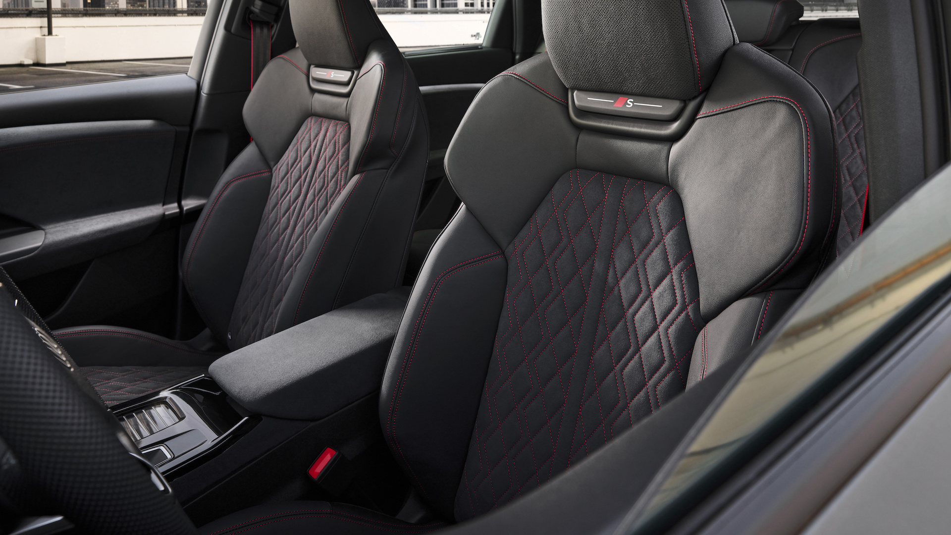 Front seat passengers enjoy sporty seats with loads of adjustment, and Nappa leather upholstery as standard. For an extra cost you can choose a leather and microfibre combo with extra red detailing for that sporty touch.