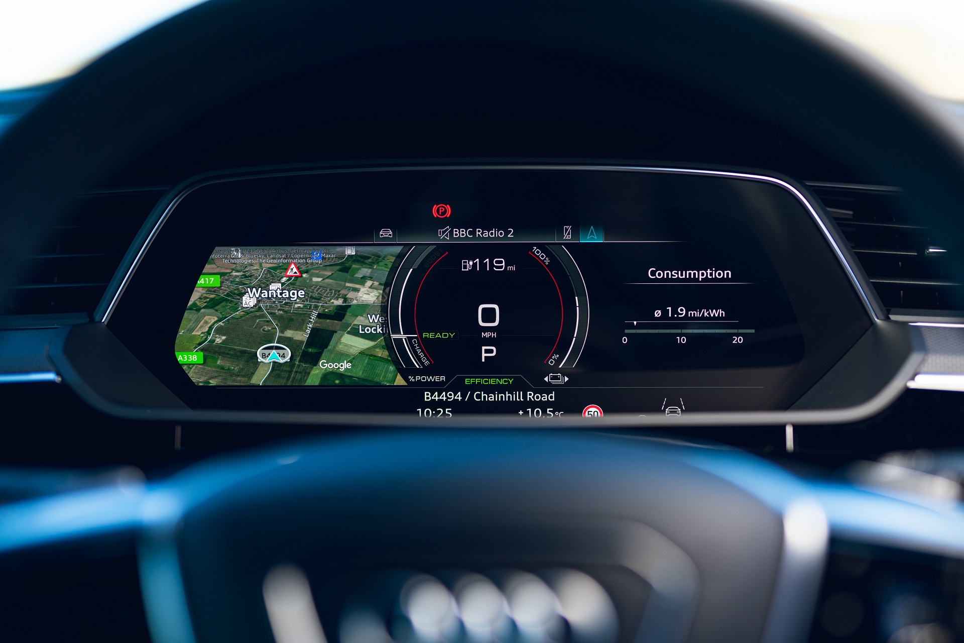 If anything, there have been even fewer changes in the cabin. In fact, the only real updates have been some new trim materials on the dashboard and door panels. Everything else, from the driver’s digital instrument display to the twin-screen infotainment system is exactly the same. That’s not a huge issue really, as it’s all pretty good inside, and Audi’s quality standards are exceptional, but you will find some fiddly buttons and the overall infotainment experience isn’t as good as that of a BMW iX or Mercedes EQE SUV.