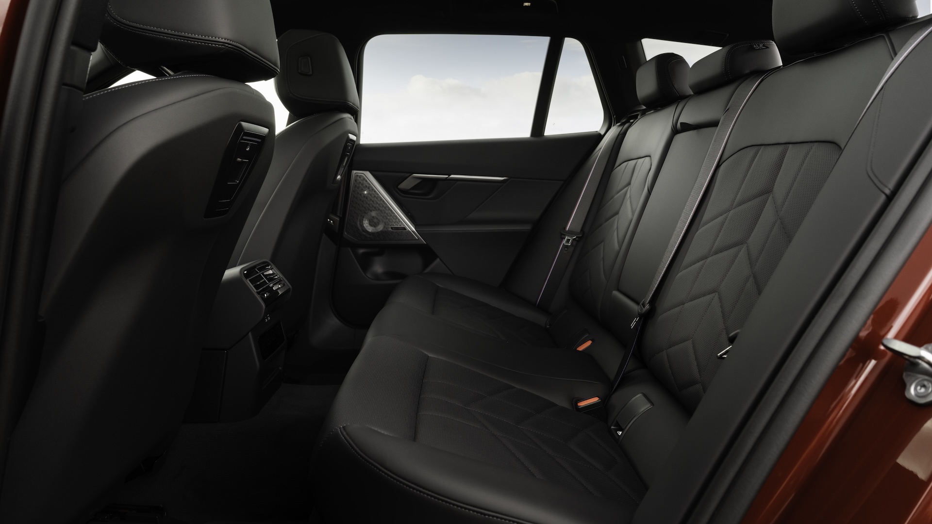 Rear passengers get a pair of cupholders in the flip-down centre armrest, door bins big enough to take a small bottle of water, and a USB-C port in the back of each front seat. You can option phone or tablet mounts to slot in here too.