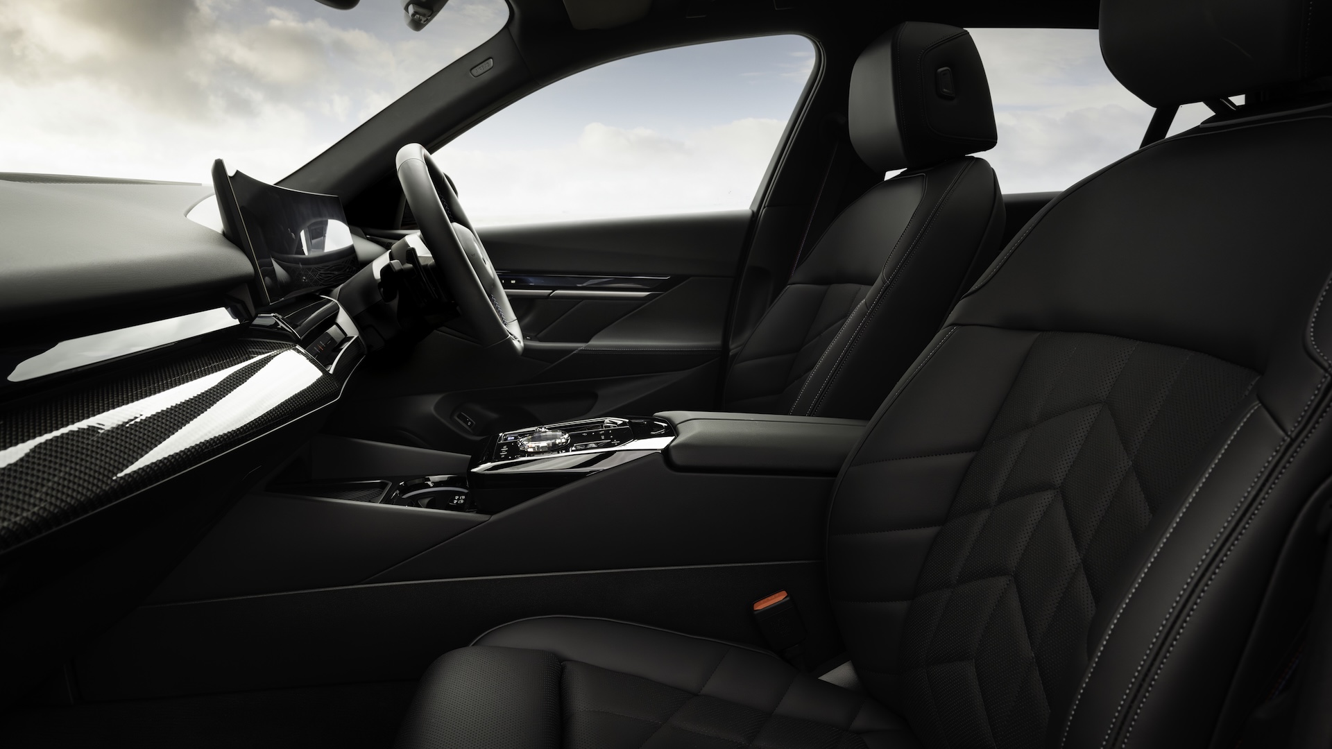 The dashboard of the 5 Series Touring is dominated by a pair of huge screens - a 12.3-inch driver display sits alongside a 14.9-inch one for infotainment, both under the same piece of curved glass giving the illusion of a seamless display.