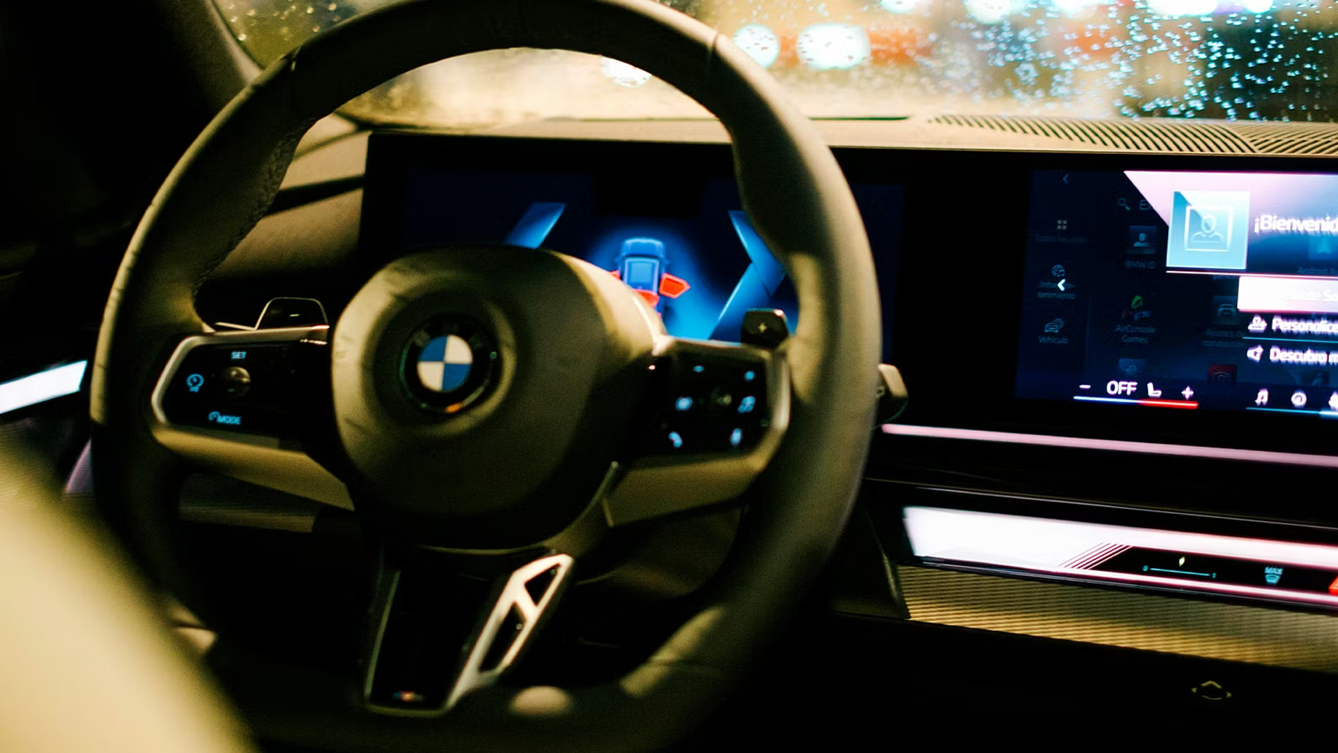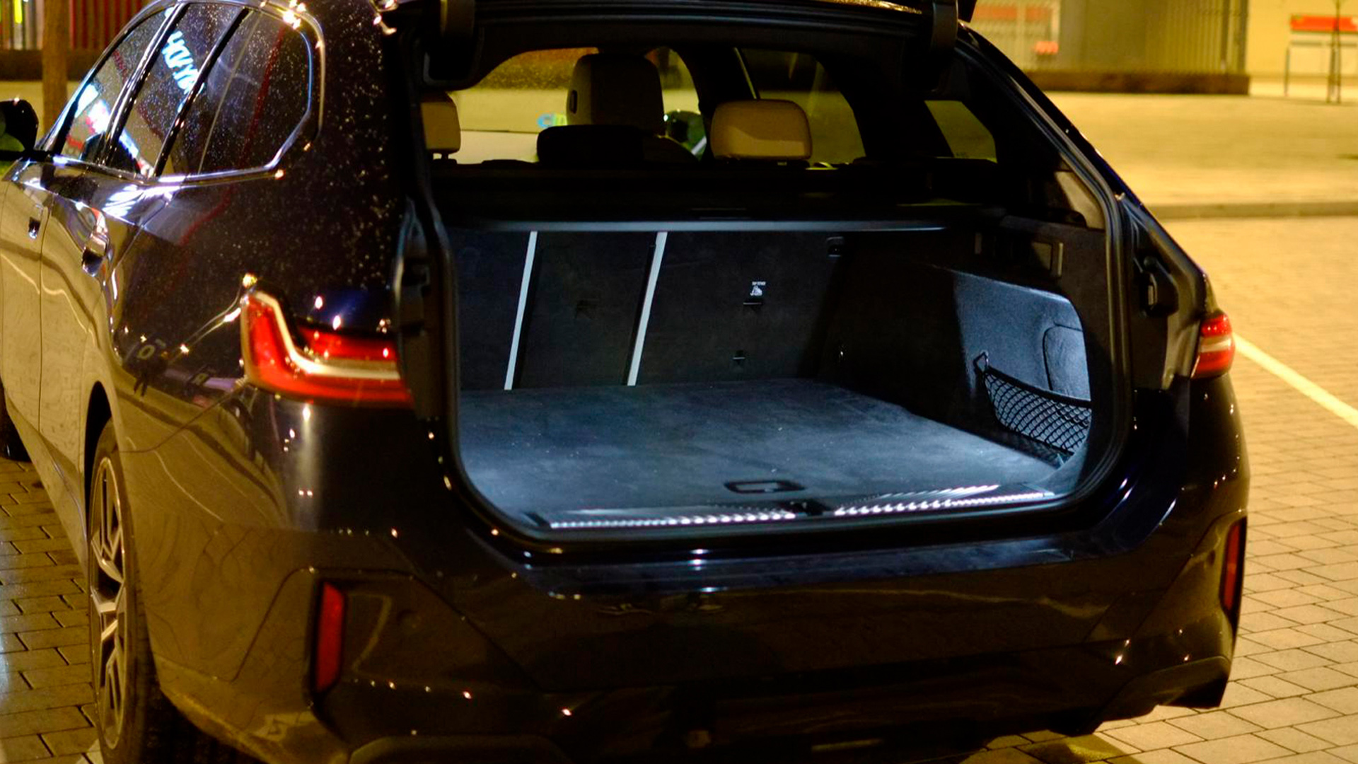 The BMW 5 Series Touring has a striking interior. The panoramic roof and ambient lighting create a great atmosphere, and the “Interaction Bar”, that backlit crystal strip across the dash, adds a lot of personality.