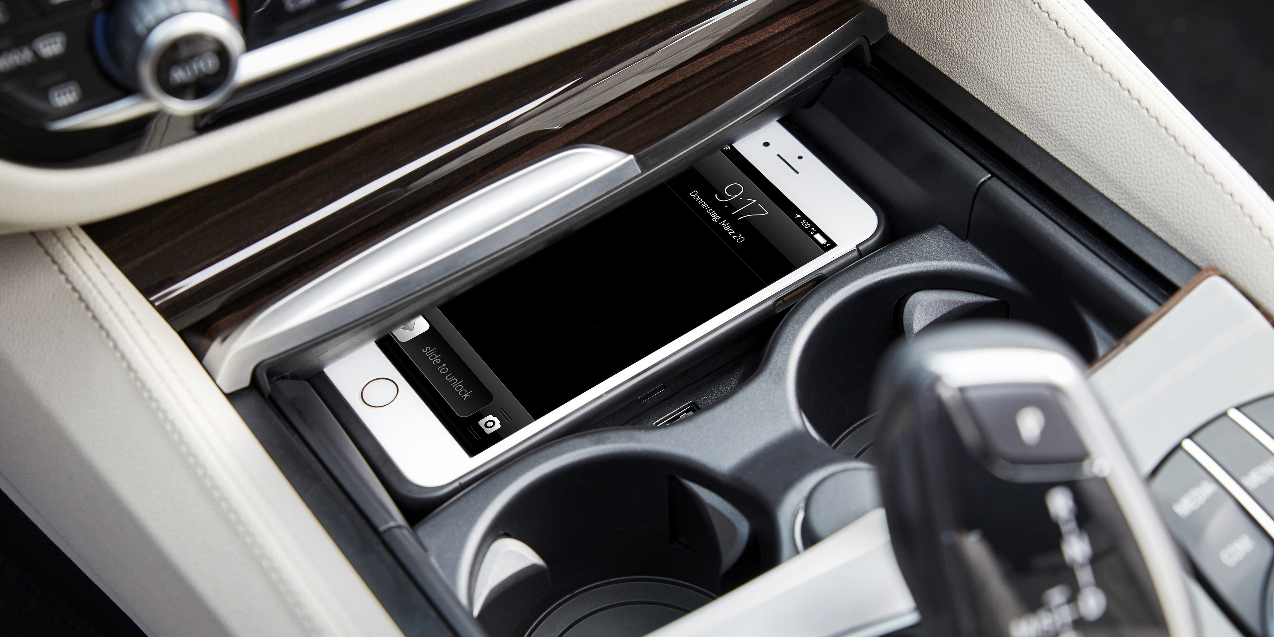 There are two large cupholders in the front and two in the back that flip out of the folding rear armrest. The front armrest splits in two to reveal a large storage bin and there’s a slot under the dashboard with a wireless charging pad for the optional £195 digital key.