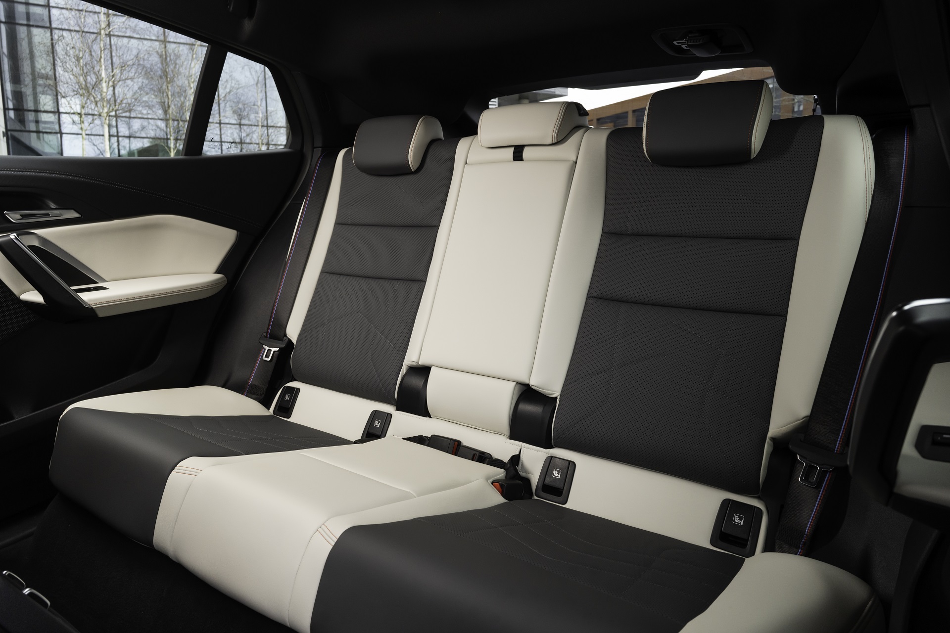 Loading child seats isn’t the easiest thing, as the rear doors are smaller than on the iX1 and the lower roofline restricts the opening space. ISOFIX points are present and correct in both outer rear seats, behind removable plastic covers.