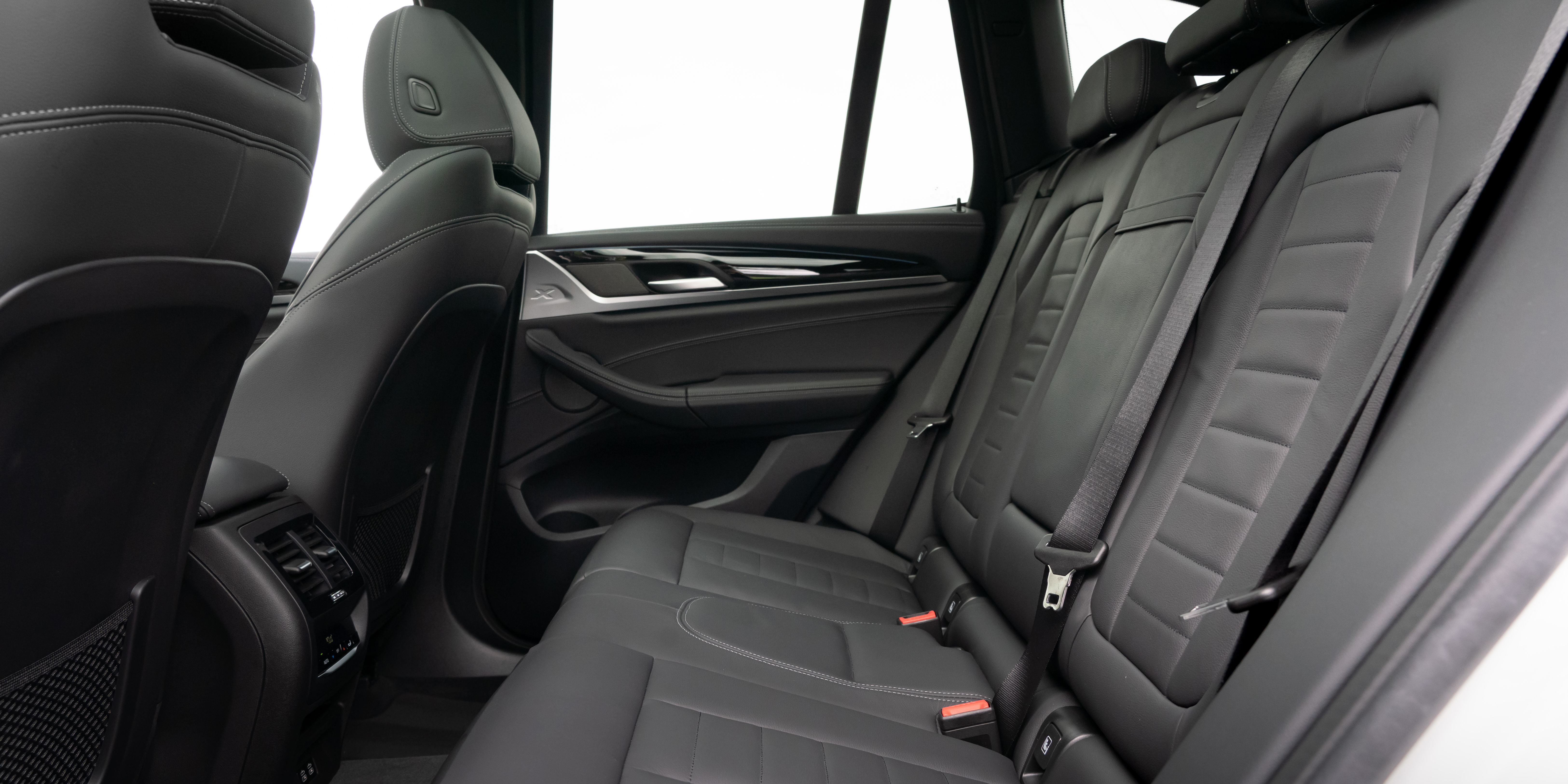 The combination of a slim battery pack and scooped-out front seatbacks means that there’s plenty of space for knees, feet, and heads in the back seats. The seats in the back are also well-designed so you’re not sitting awkwardly with your knees perched up, so you’ll get fewer backaches on a long journey in the back of the iX3. The back seats recline too, so it’s easy to get very comfy. The centre rear seat is a little bit raised up compared to the others, but it’s not too bad and you should be able to get three people sitting comfortably across the back (especially if they’re teenagers).