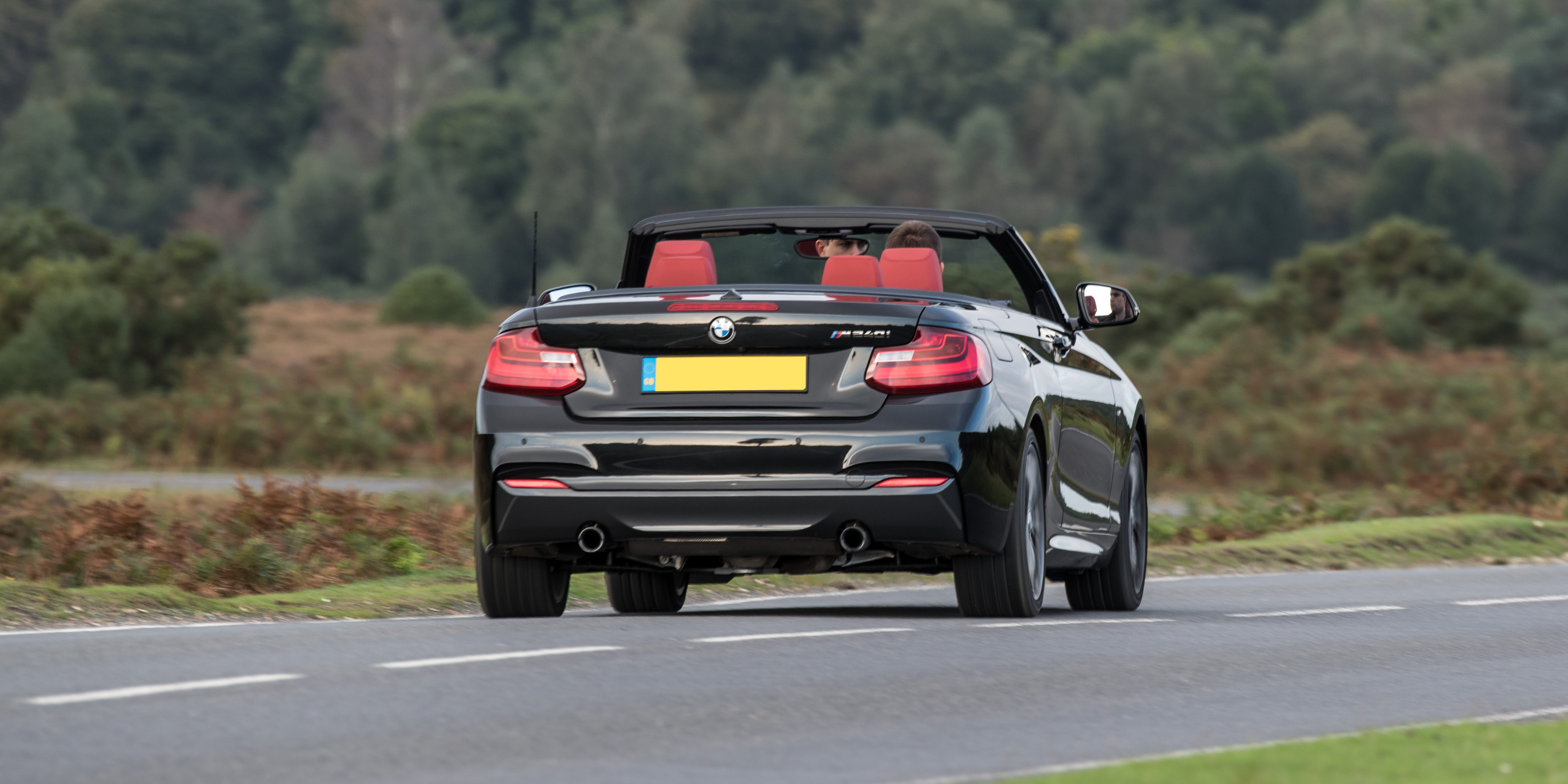 The standard suspension does a good job ironing out bumps around town and stopping the BMW M240i Convertible’s body leaning in tight corners, but the optional Adaptive M Sport Dampers make it better still. This system lets you choose between softer settings for long motorway journeys and firmer setups to make the car feel more agile on twisty roads – effectively letting you have your cake and eat it.