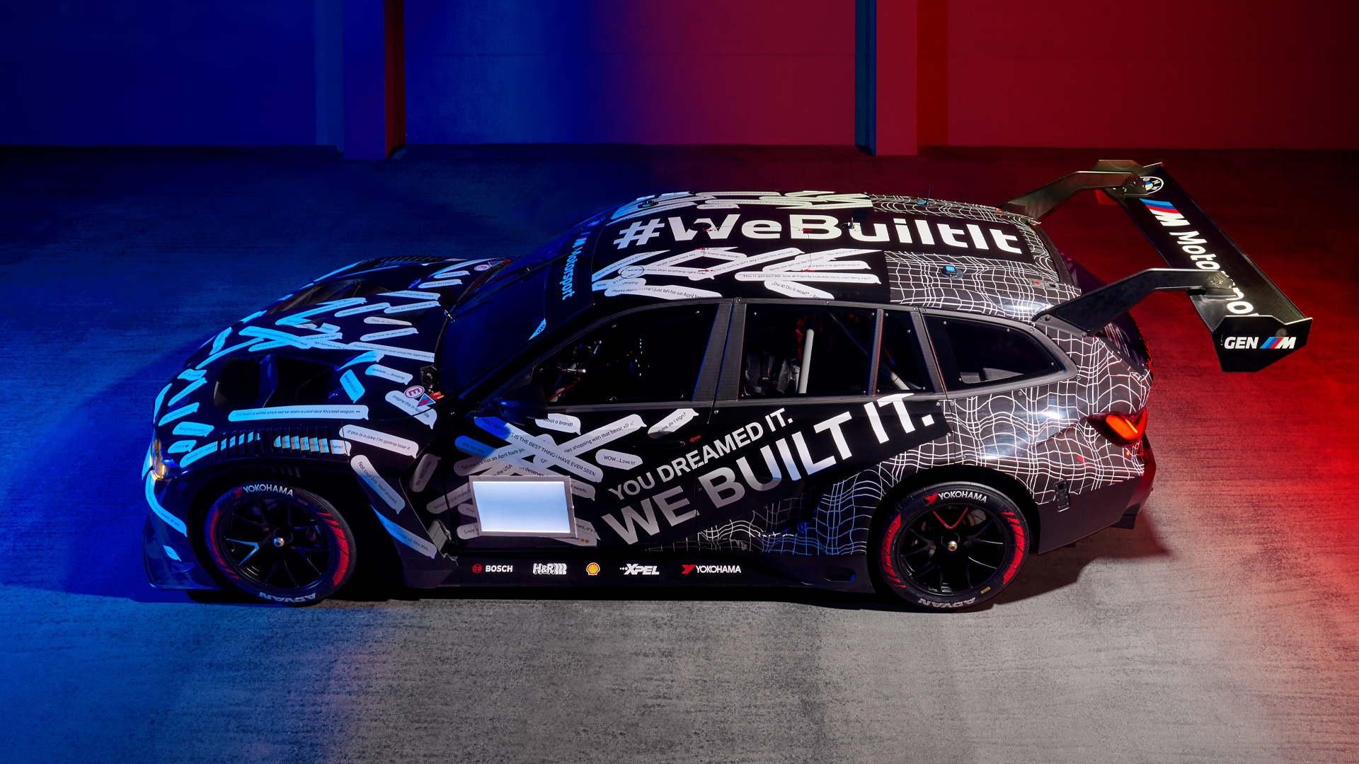BMW has also come up with an awesome racing livery for this car: it’s covered in comments from fans on social media begging for it to build this car after it was first revealed as a joke in 2025. Across the rear, the M3 Touring 24H simply says: #webuiltit.