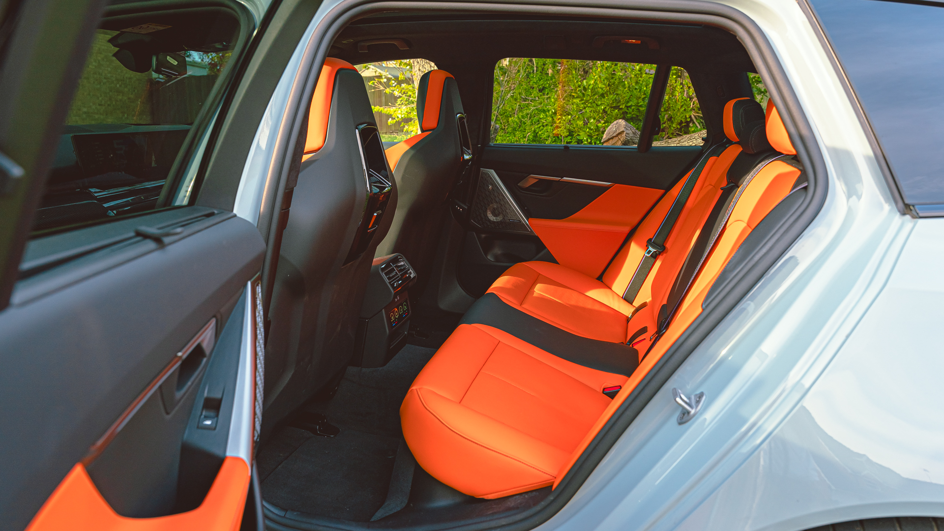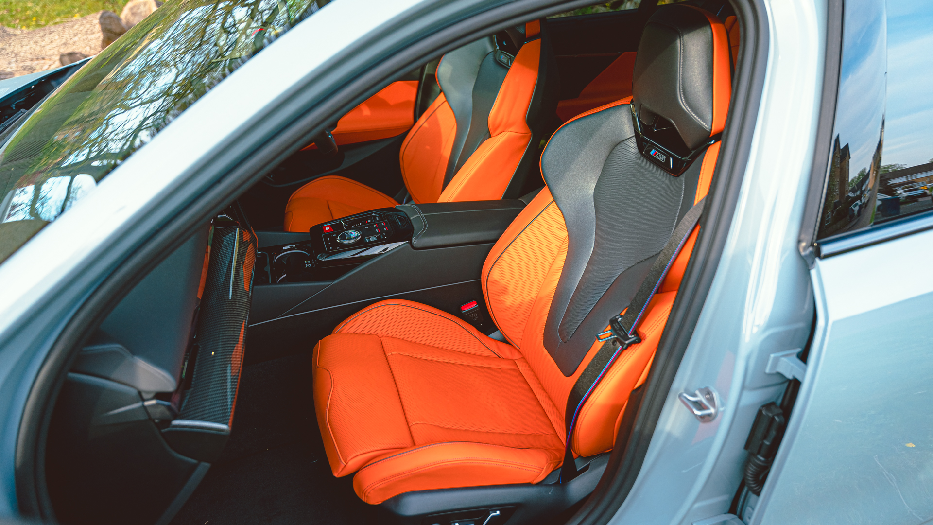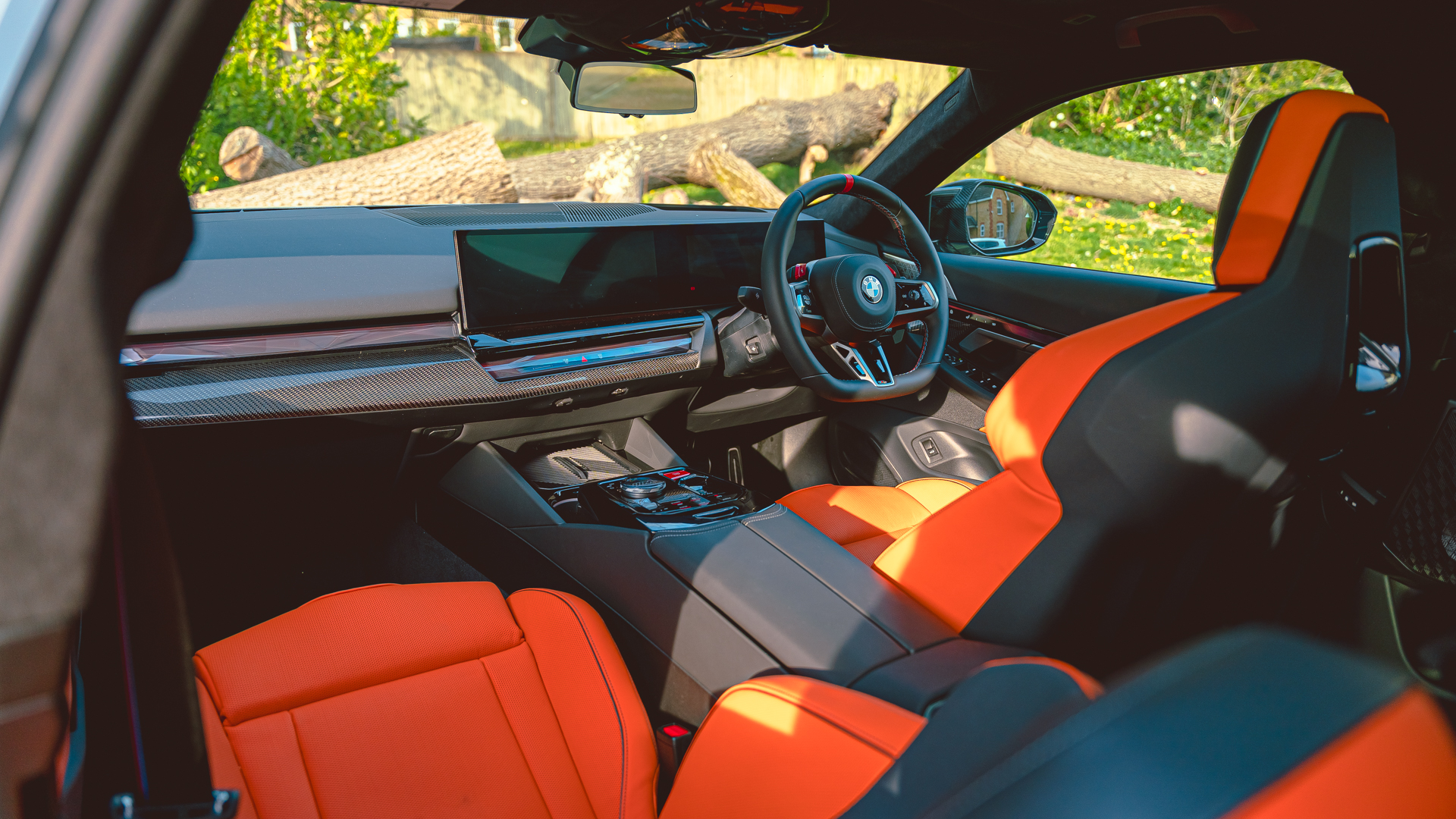 Up front, the M5’s cabin is great for long distance drives. The standard-fit sports seats are figure hugging and supportive without being too constrictive for those with a larger build, but the shoulder bolsters do crease very easily. We found marks in the leather on a car with just 1500 miles on the clock, which were especially noticeable in the ‘Sakhir Orange’ leather finish.