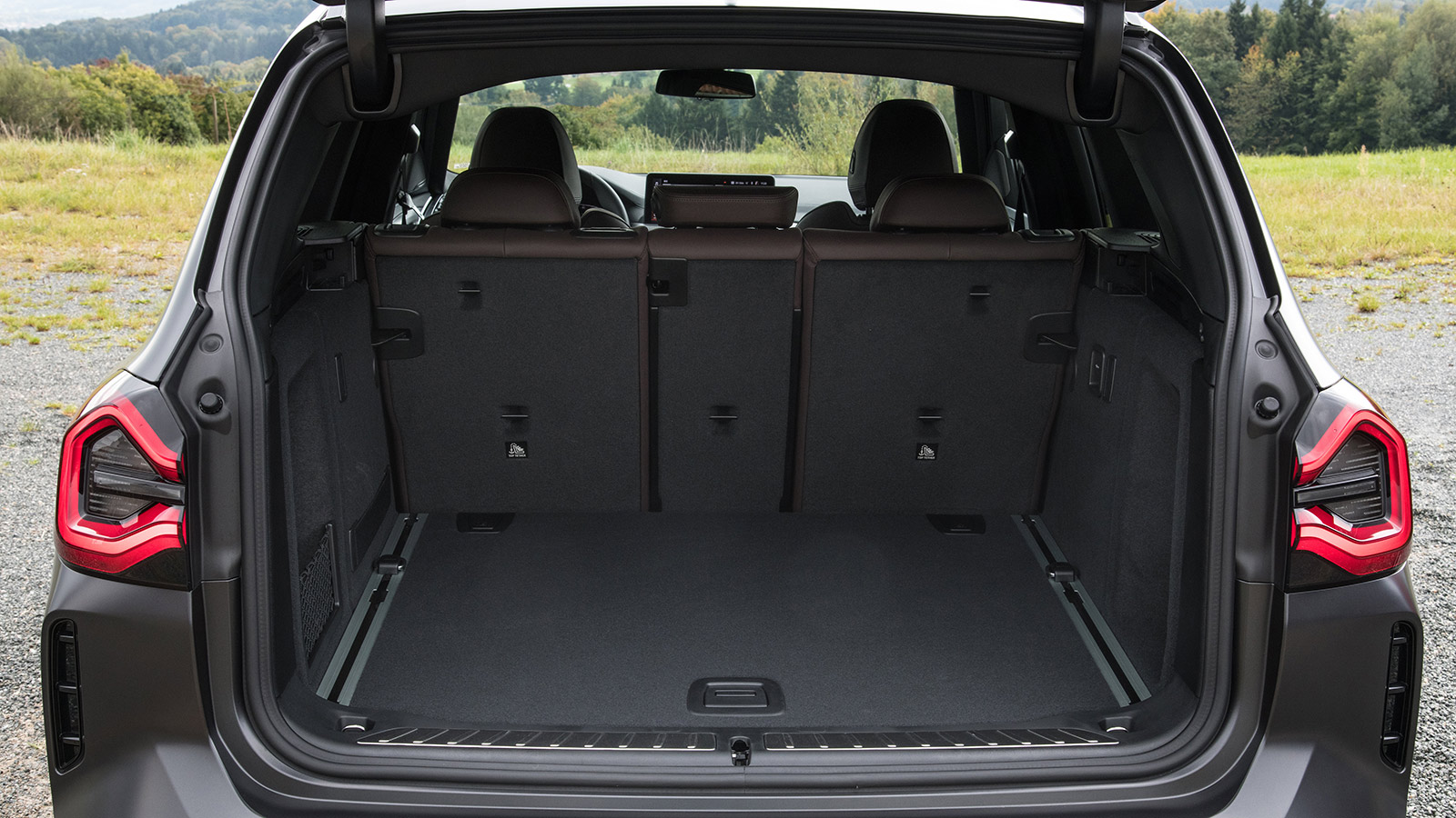 It's less impressive with the plug-in hybrid model, which drops to 450 litres. All of its alternatives have a similar problem in their hybrid versions, but the X3 is still a bit smaller than all of them. More annoying is that, because of the batteries beneath the boot floor, there's a raised central section that requires you to slide heavy items off a ridge before pulling them out. And folding the rear seats introduces another small ledge that makes it tricky to get heavy items out if you've pushed them right through.