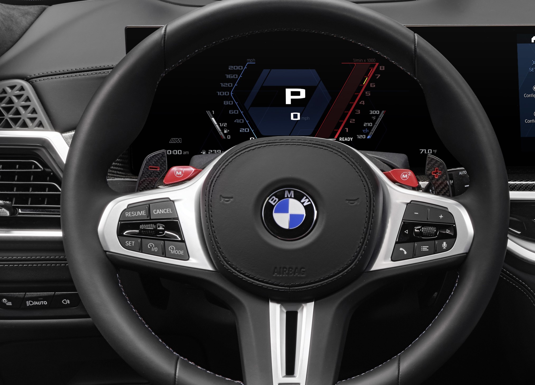 And, if by some miracle you’d missed the exterior, the X5 M Competition’s interior is every bit as in-your-face. Think seriously figure-hugging seats with quilted stitching, aluminium trim, sports pedals and ambient lighting. Of course, there’s the chance to up the ante with BMW’s options list, but a superb fit and finish are standard.