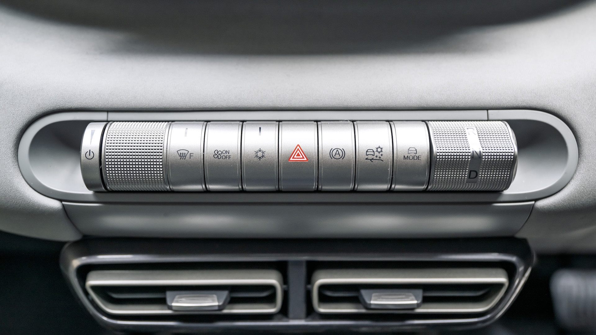 Switchgear is a different story, as the row of physical buttons, the gear selector, door handles and the door buttons all feel sturdy and high quality, with well-damped clicks. The air vents look and feel rather nice too, as does the steering wheel - excluding the plastic airbag cover.
