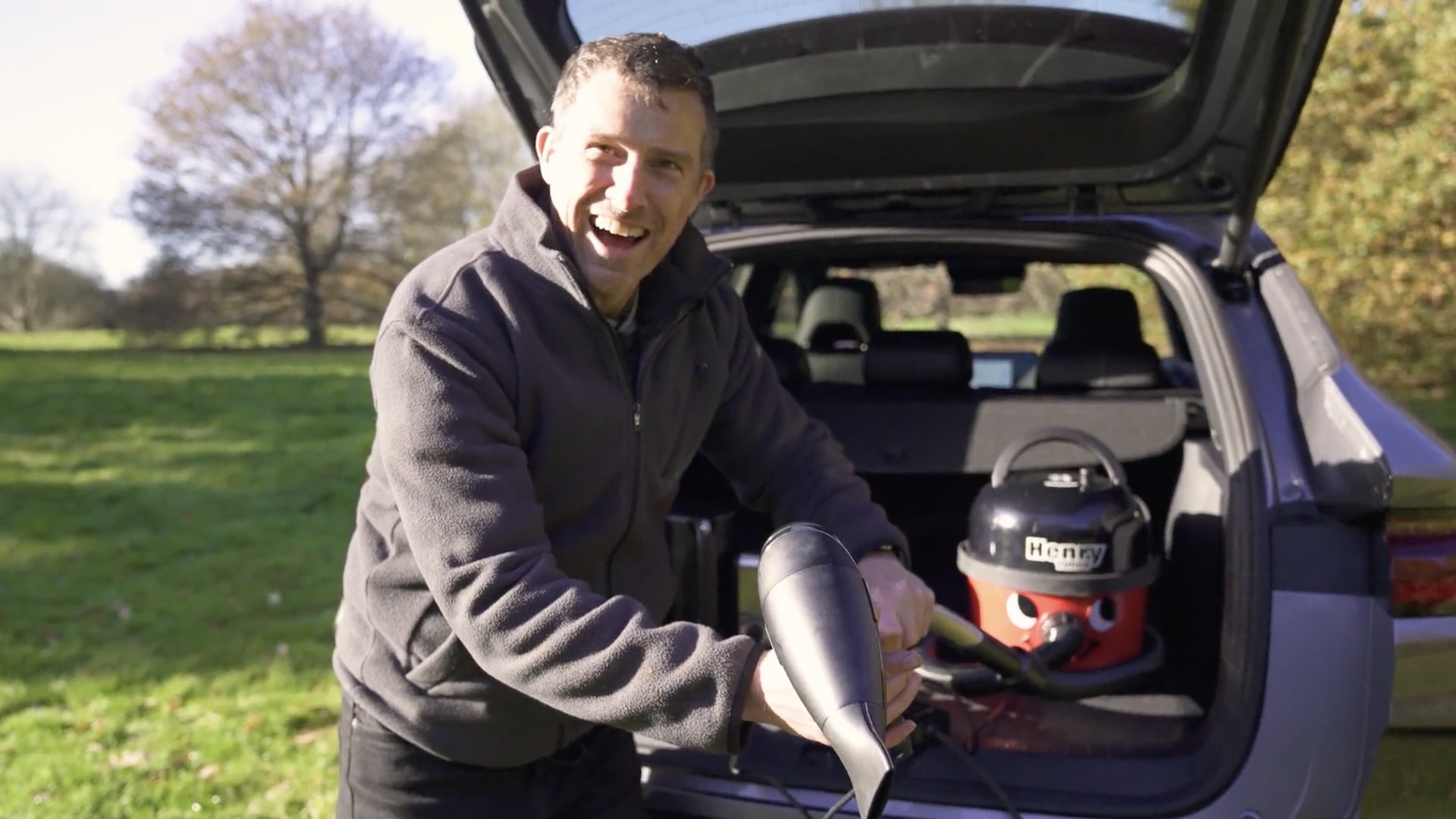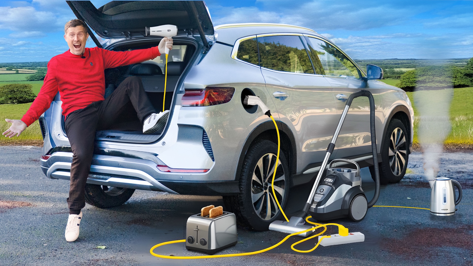 The coolest thing about this car is its “vehicle-to-load” system, which lets you power multiple household appliances from its battery. I tried running a hair dryer, kettle, toaster, and vacuum one by one – no problem. But turning them all on at the same time drained the battery to 27% and threw up a warning sign. Still, being able to power gadgets at once is super handy. I even used it to jump-start another EV when it ran out of juice!