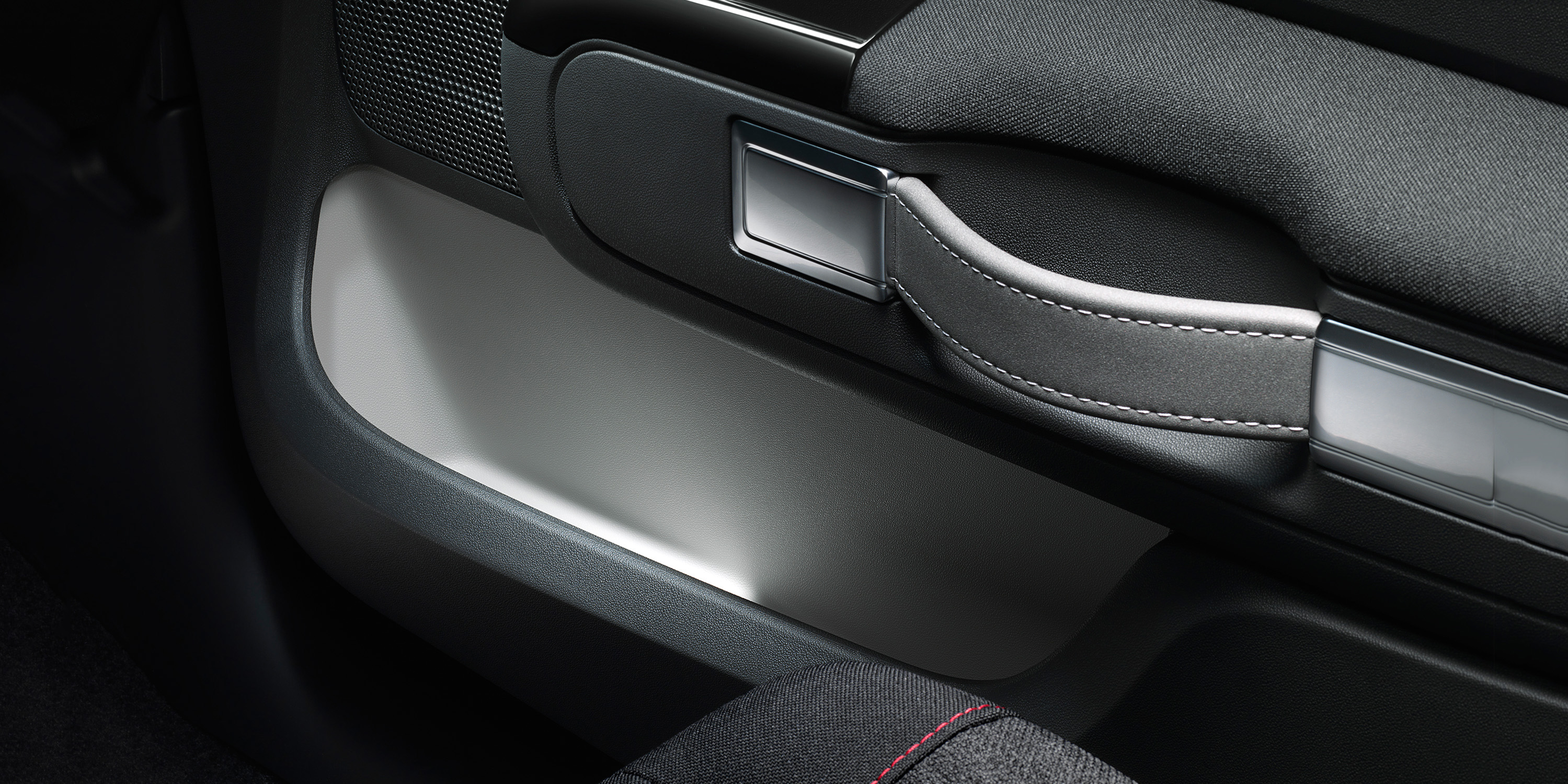 The front door pockets are massive – they’ll carry enough bottles of water to douse a campfire and even the smaller rear doors have space for a litre bottle of water. The insides of the door pockets are also painted white, so it’s easier to sift through all the junk you store in there.