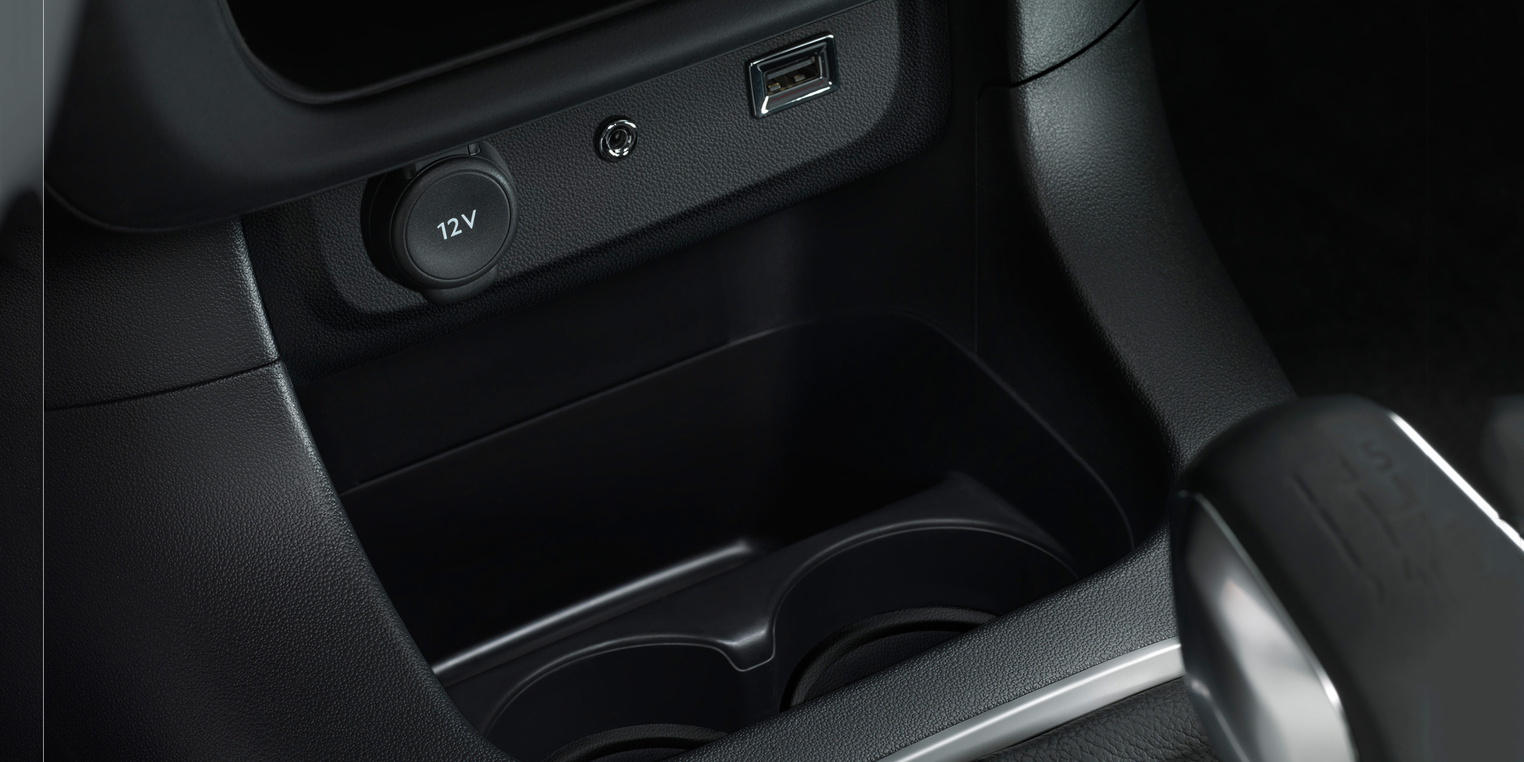 On top of that, you get a tray for your phone and a couple of shelves that’ll take smaller items such as a wallet. There’re also a couple of cupholders in front of the gear shifter, although they’re too small for a litre bottle of water.