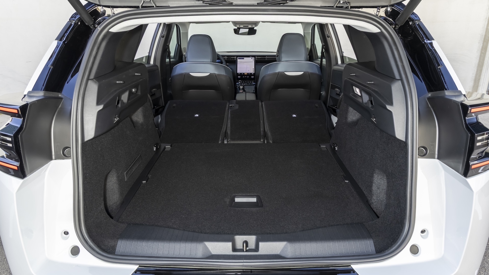 Underneath the bridge-like infotainment display that joins up the centre console and dashboard is a large storage cubby, complete with two USB-C chargers and a pair of cupholders. It’s even painted a bright colour so that you can see small items more easily.