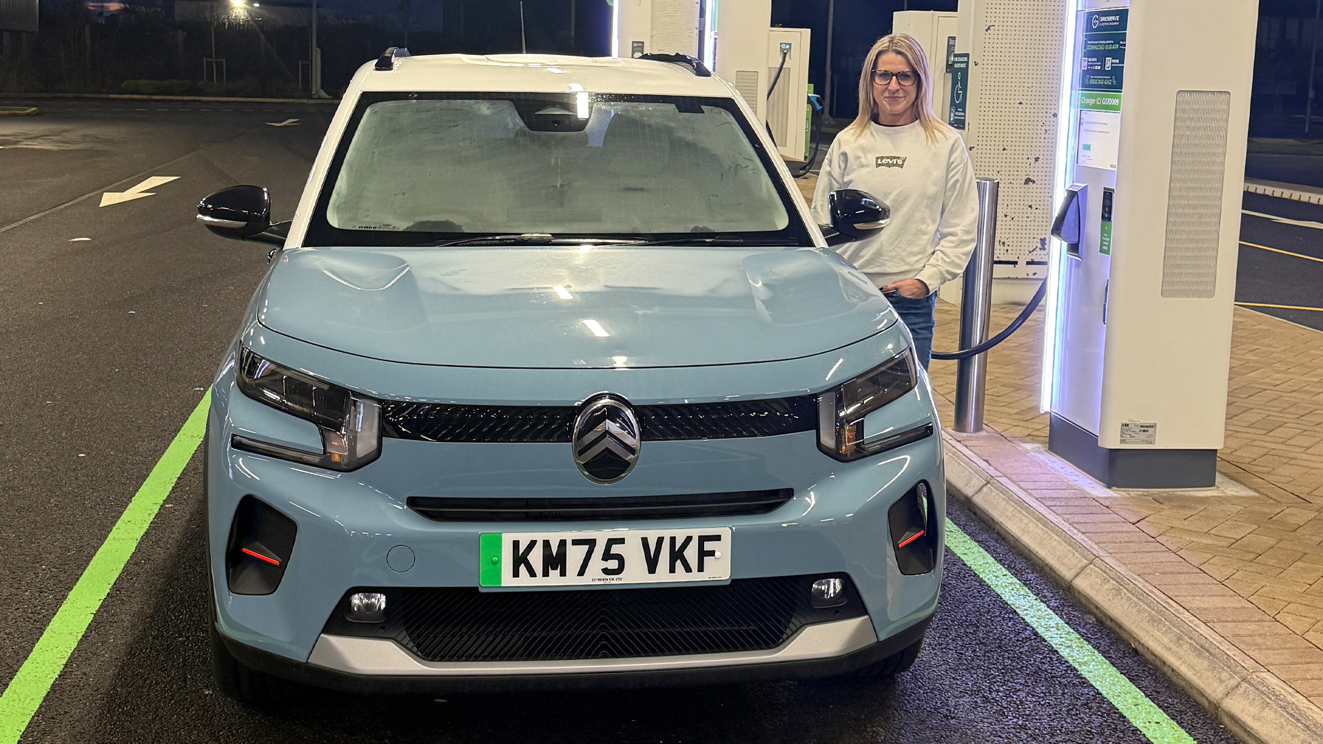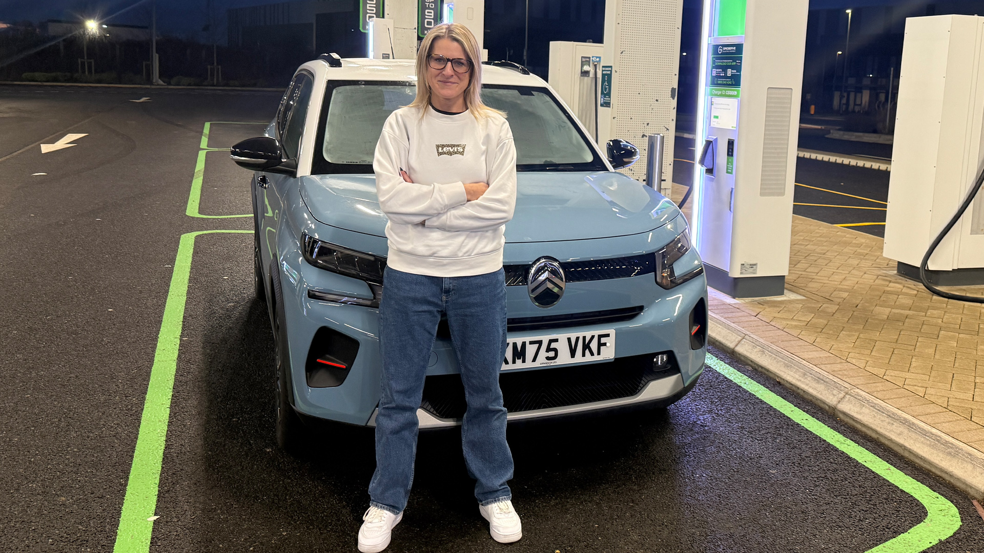 When I’m not tackling motorway journeys, the Citroen e-C3 is a great little runaround. For starters, I think it looks miles more stylish than my old boxy Citroen e-Berlingo, and the baby blue and white paint job is fab as well. I also quite like the interior design, especially the funky square steering wheel.