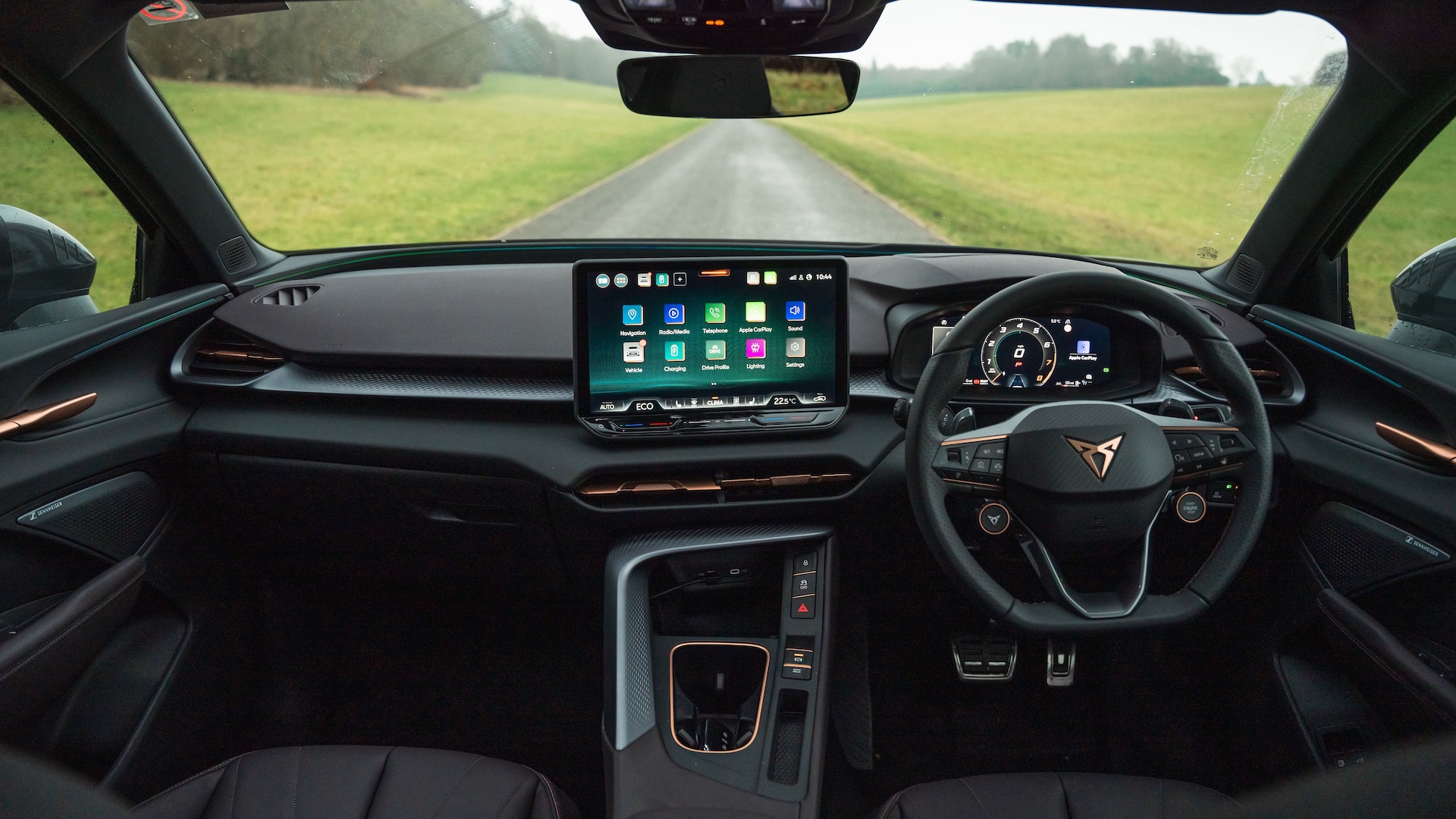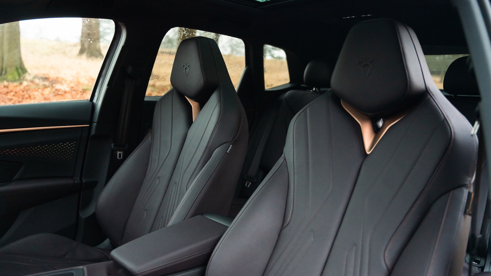 Inside, it’s a bit more restrained, but there’s evidence of Cupra’s sporty intentions here too. The seats are very sculpted, and the starter button is positioned on the steering wheel - just like an Audi R8. There’s also copper detailing on surfaces like the air vents and door cards - a Cupra hallmark.