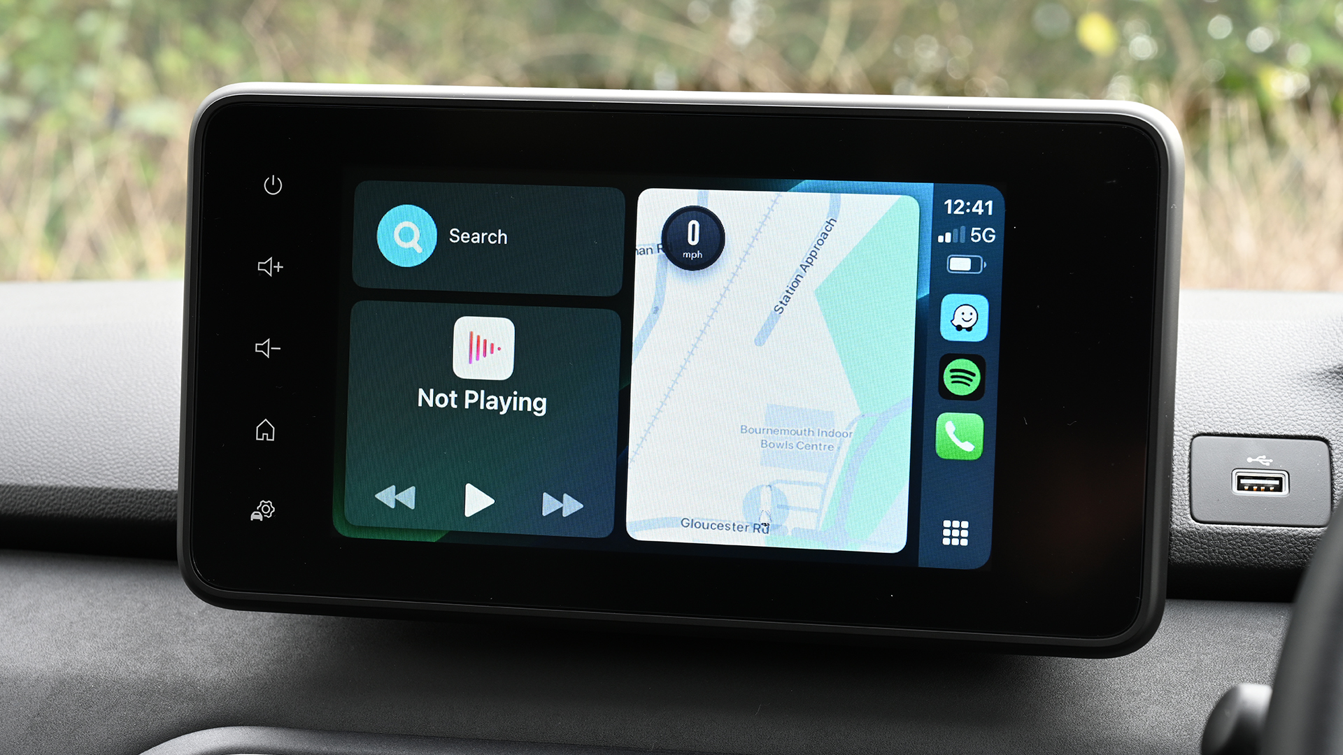 With its no-frills price tag, you get a pretty no-frills set of standard equipment at the entry-level. Air conditioning, metallic trim detailing and 16-inch steel wheels with covers are included, but to get an infotainment system you need to download an app onto your smartphone. But at least there’s a built-in smartphone cradle you can then use to hold your phone in place.