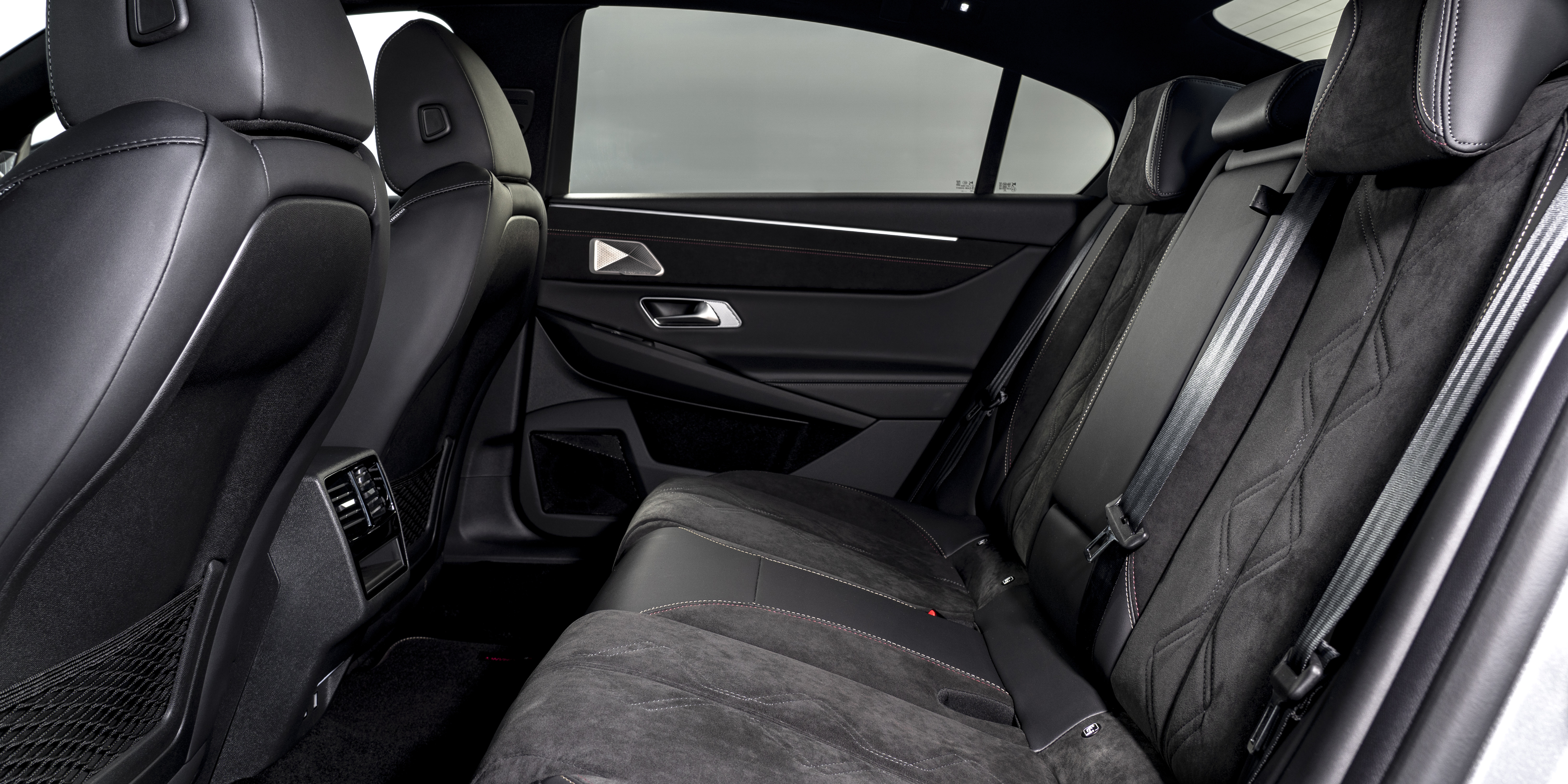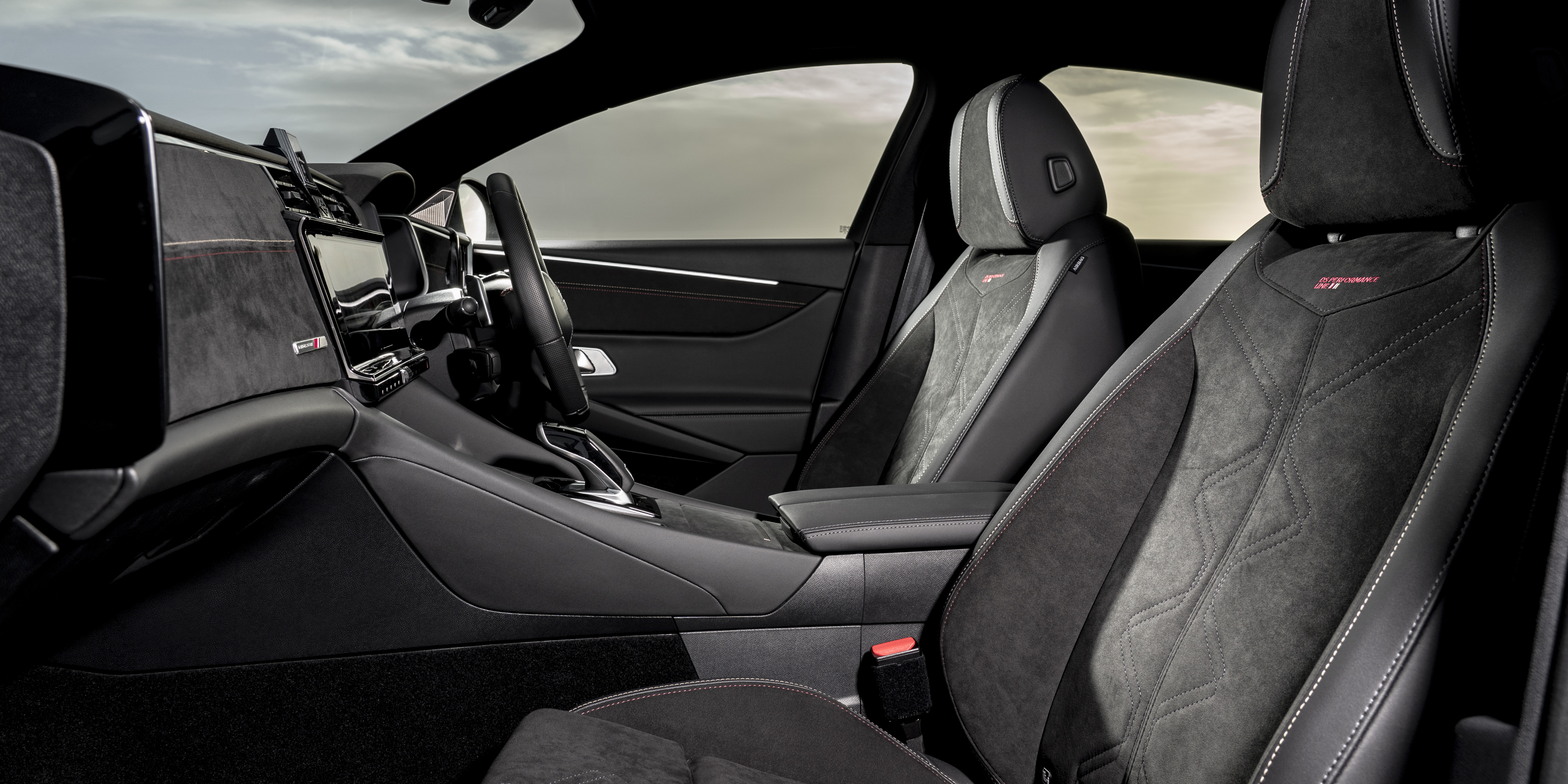 It’s much the same story inside. The design looks a lot like that of the DS7 Crossback SUV, but that’s actually no bad thing. Quality also seems to have stepped up a notch from previous posh French cars, particularly if you splash out for the optional ‘Opera’ extended leather pack. That brings elegant ruby red leather splashed all over the cabin so pretty much every surface you touch feels really plush. Even the roof mounted grab handles are finished in stitched leather.