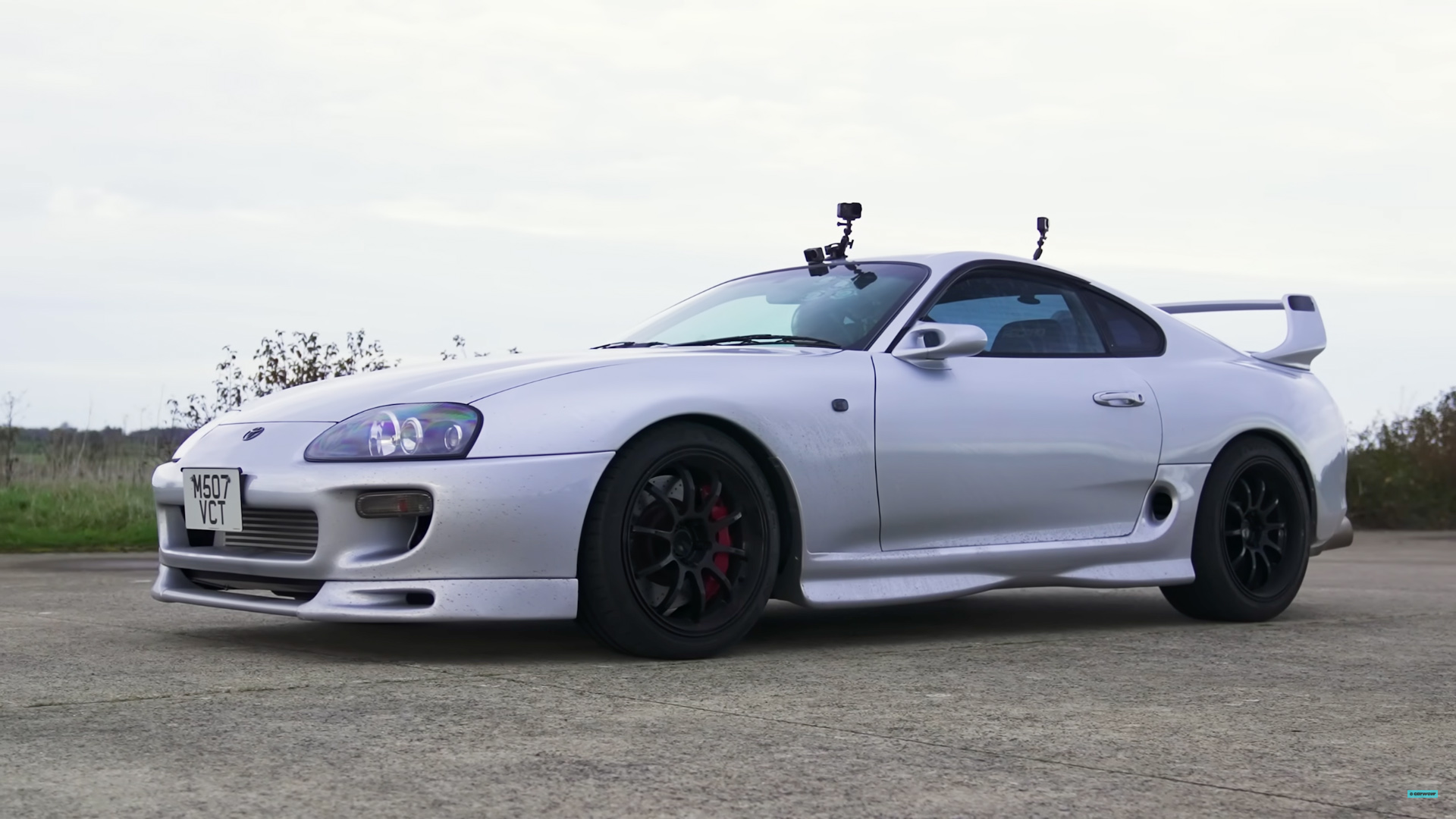 Next to me on the start line is a Mk4 Toyota Supra, and it uses the same 3.0-litre engine as the BMW. This car is running the standard twin-turbo setup, but it is fitted with around £2,000 worth of mods including an ECU tune, custom exhaust and a new intake.