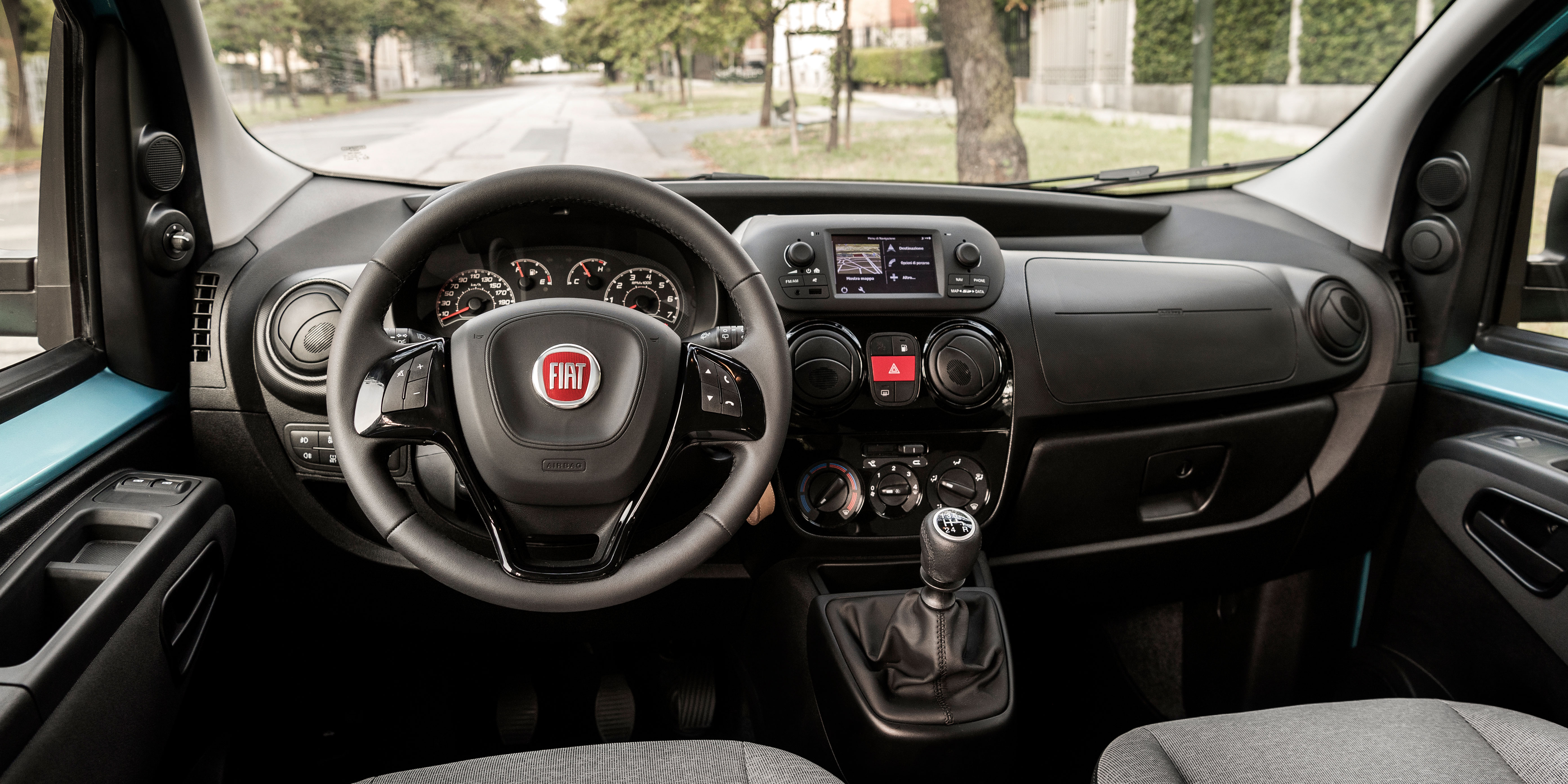 This form-over-function approach runs right the way through the Fiat Qubo’s cabin. There are acres of headroom, the front doors open nice and wide and the back doors slide rather than swing open so it’s easy for passengers to climb in – even in tight parking spaces.