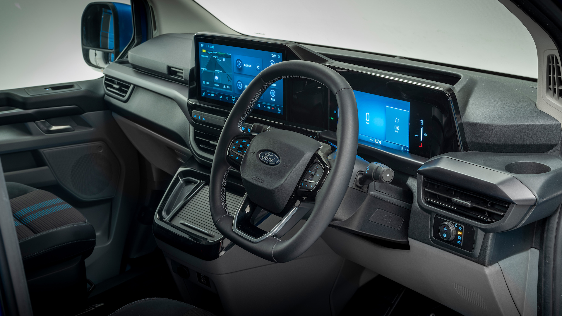 Another string to the E-Transit Custom’s bow is the cab. It’s a really fantastic place to sit, with all models having both an 8.0-inch digital instrument cluster and a 13.0-inch widescreen infotainment system. It’s easy to use, well-built and packed with clever touches.