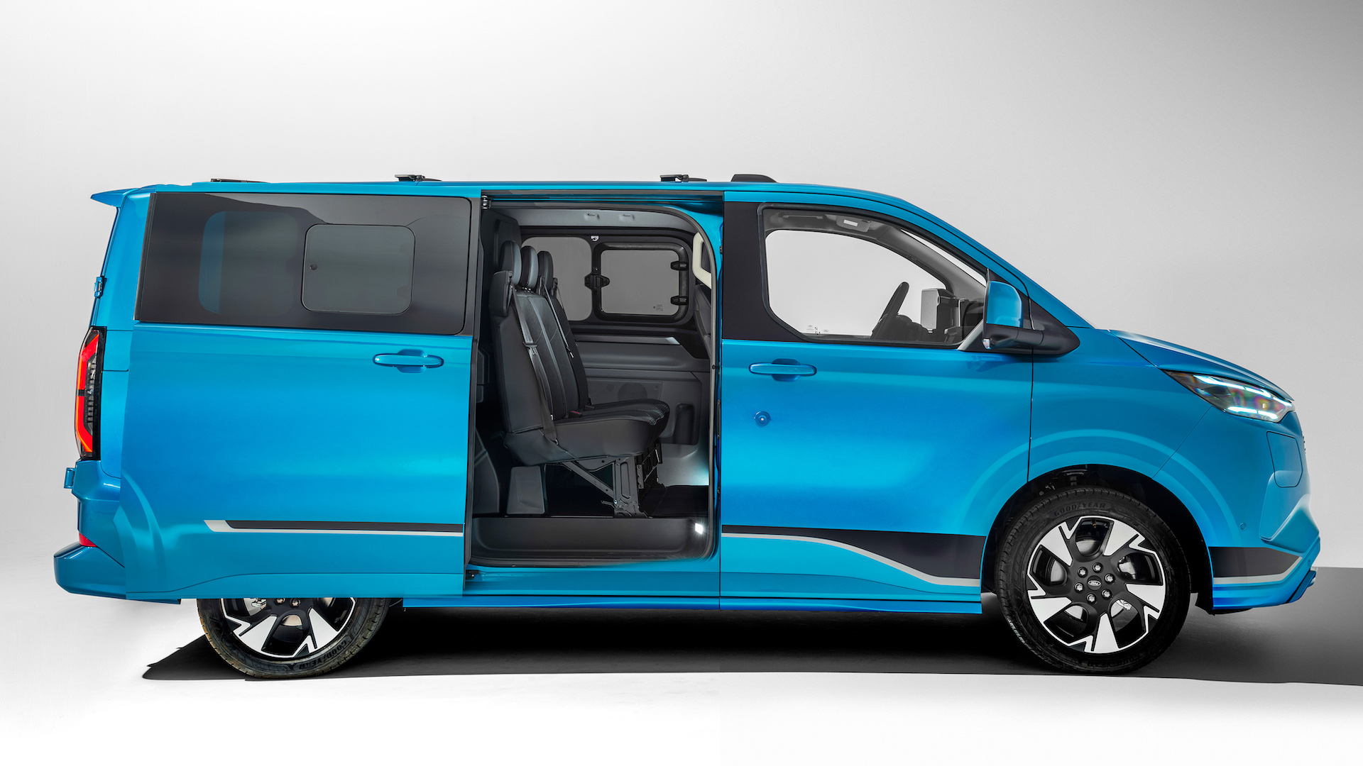 There’s of course the standard panel van, then the popular Double Cab in-Van (DCiV) which seats up to six people with a full-width bulkhead behind them. The Transit Custom Kombi seats up to eight, or the posher Tourneo variant has up to nine seats and a plusher interior with nicer materials and better soundproofing making it an alternative to the Volkswagen Multivan.
