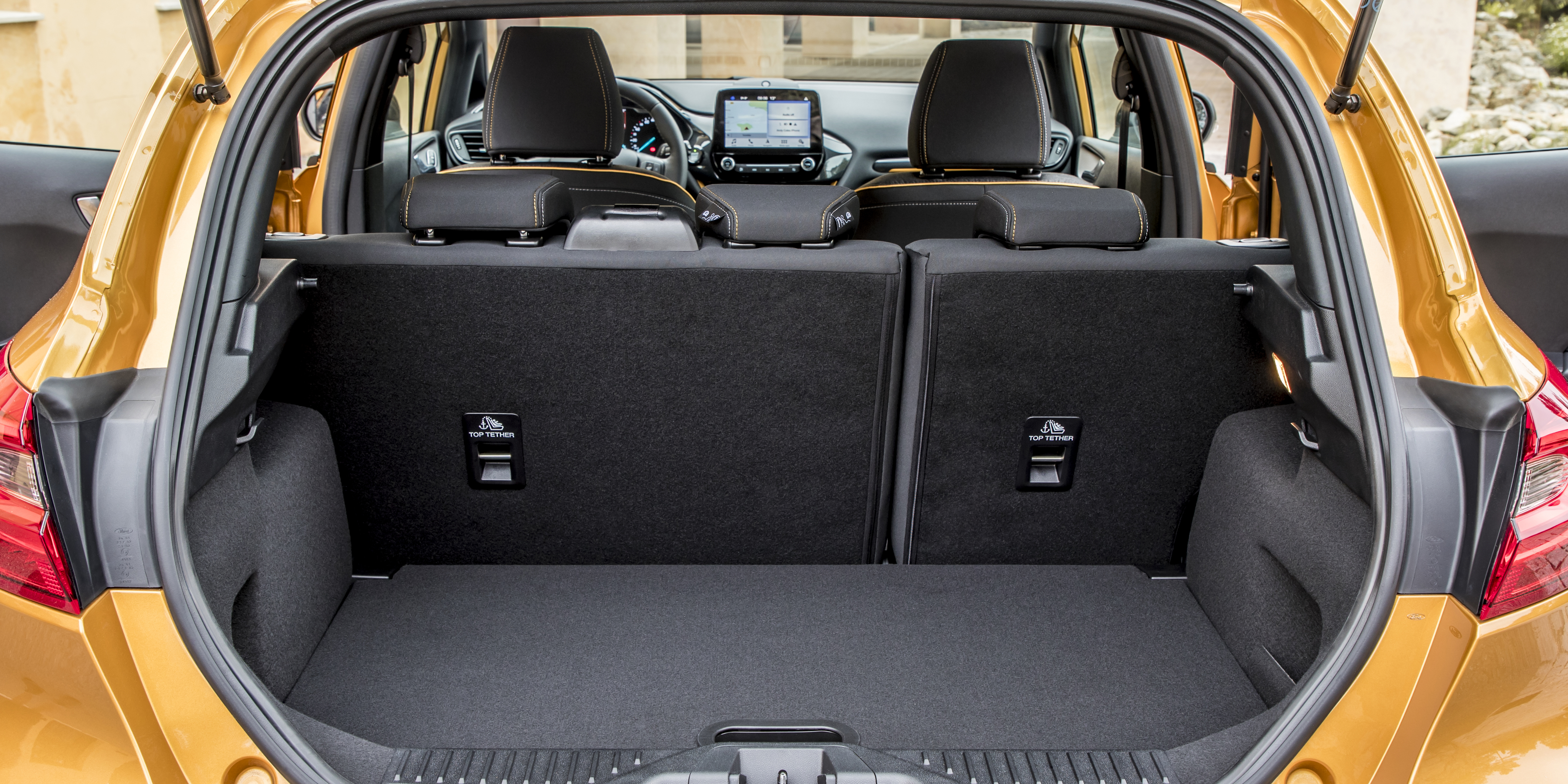 The Ford Fiesta Active comes with five doors as standard so they’re a bit easier to live with. Sadly, the boot’s still some way off what you get in roomier rivals