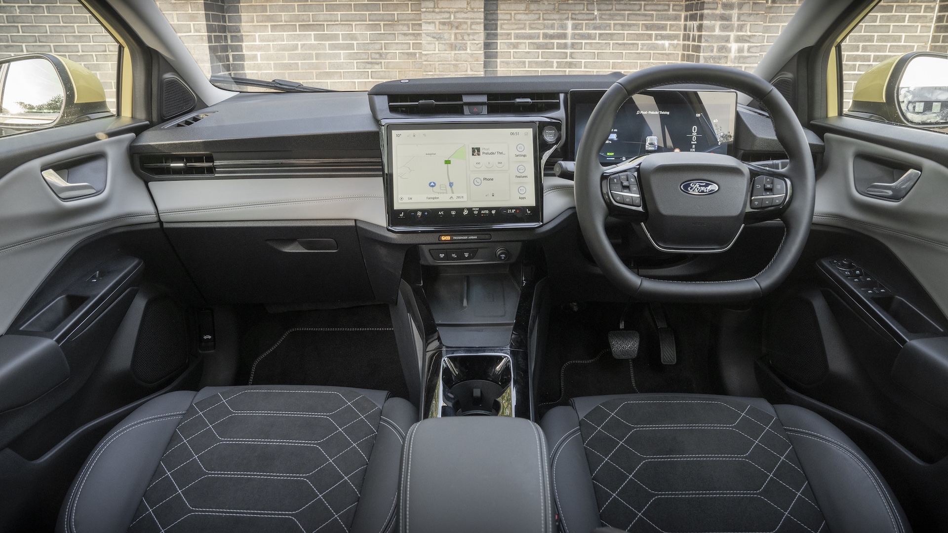 The Ford Puma Gen-E gets the same interior as the regular Puma, with a couple of exceptions. That means it’s centred around a massive 12.0-inch infotainment touchscreen and a 10.0-inch digital gauge cluster, which seems like a lot of screen in such a small space.