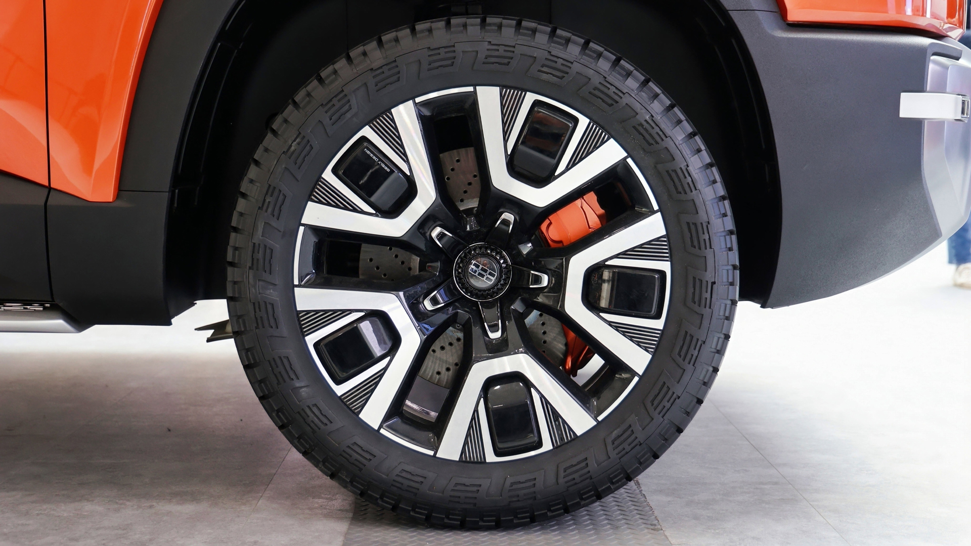 There’s no getting away from the Galaxy Cruiser’s similarities to that well-known SUV. The Land Rover Defender’s DNA is present everywhere from the clamshell bonnet to the blacked-out ‘floating’ roofline. It even gets LED headlights that look very similar to the Defender’s circular daytime running lights, not to mention the side-mounted ladder and storage pods that could have come straight from JLR’s accessories catalogue.