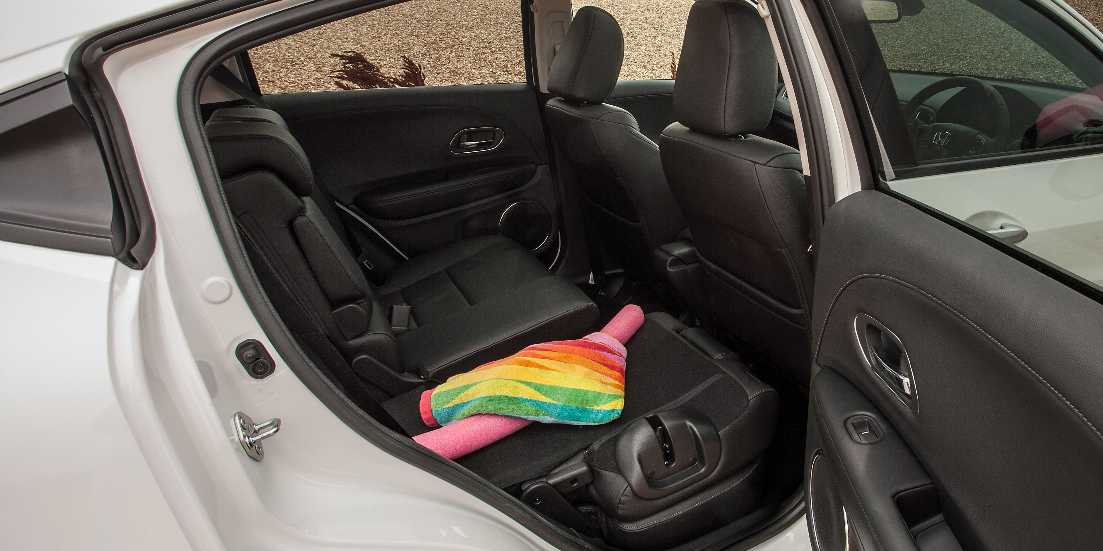There’s slightly less headroom in the back but the wide rear door openings make it easy to climb in. You can even get the Honda HR-V with some protruding running boards under the back doors to help young kids climb in easily.