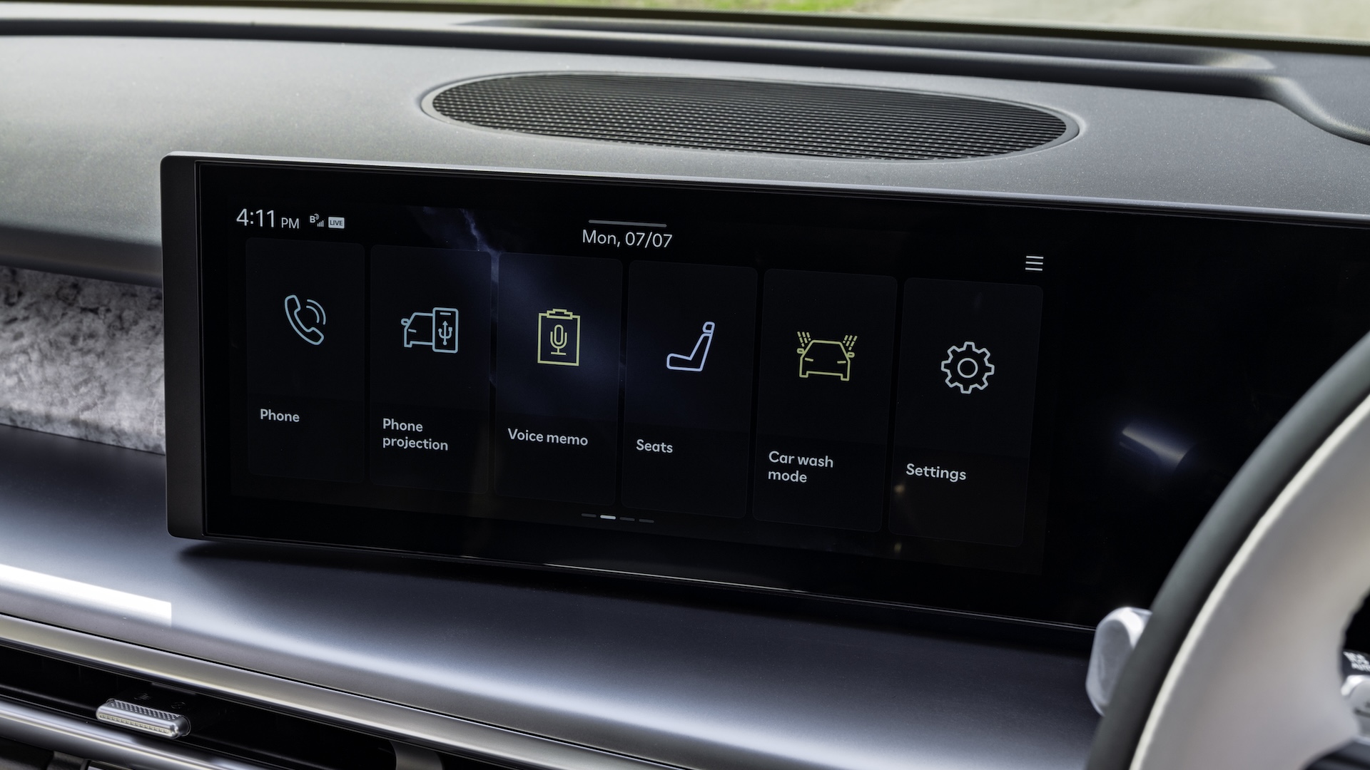 The Ioniq 9’s interior looks swish and the infotainment screen is crisp, but some of the texture choices are odd and there are too many menus to navigate in the touchscreen
