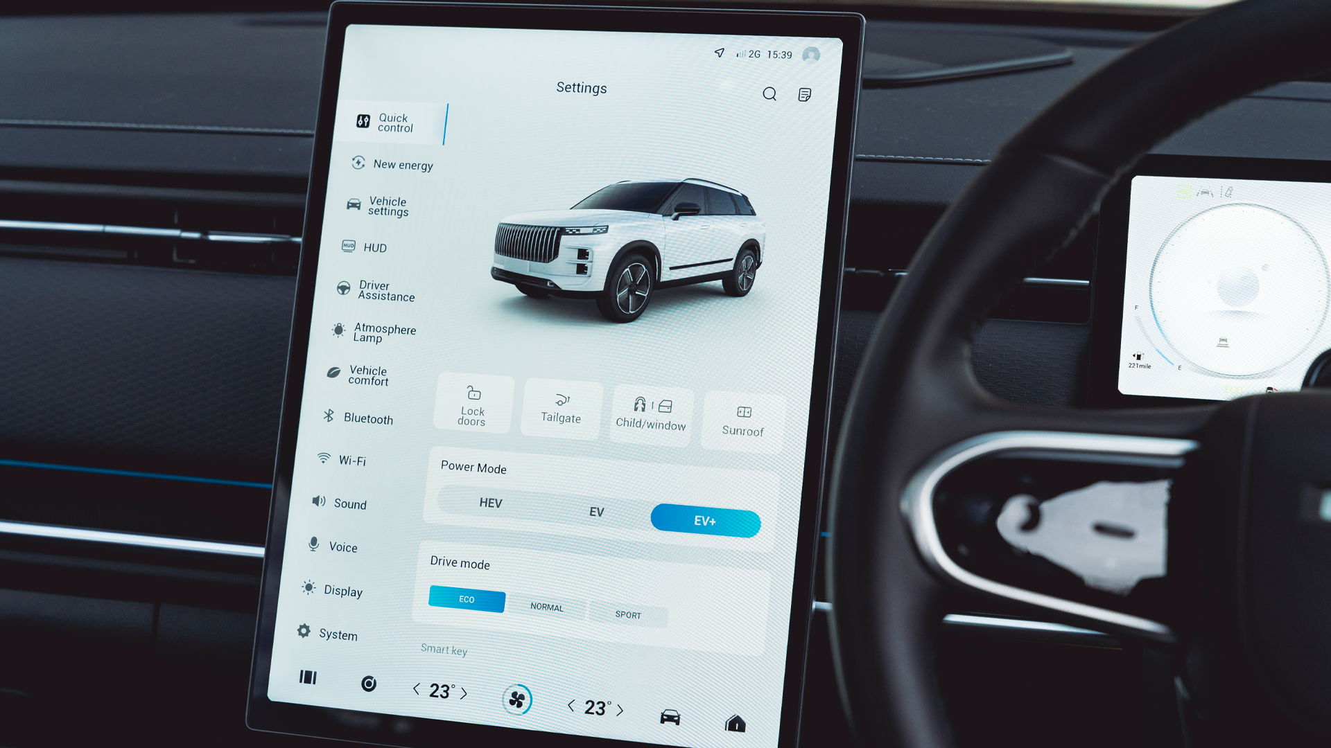 Infotainment is crucial to the Jaecoo’s cabin, as the central display controls everything from music to the climate control system. It’s hit and miss though, because while the touchscreen has clear graphics and feels responsive to the touch, it’s still fiddly to change settings on the fly.
