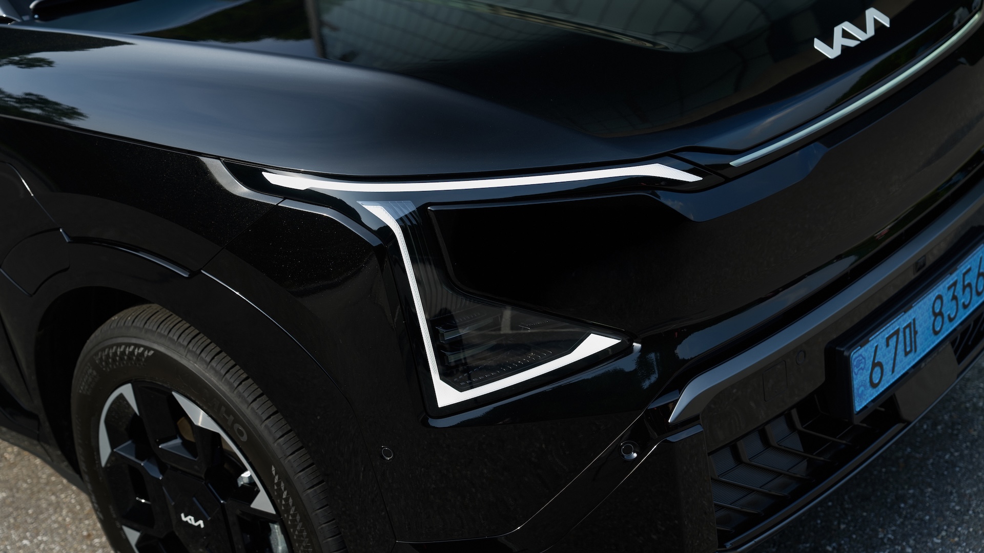 Okay, so maybe not exactly twins – perhaps they’re more like long lost siblings. The EV5 gets styling that is closer to that of the massive EV9 and the dinky EV3 than it is to the Sportage. The big LED lights sweep backwards into the wheelarches before flinging forward and around the leading edge of the bonnet in a slim light bar, very much like those of the recently-updated Kia EV6.