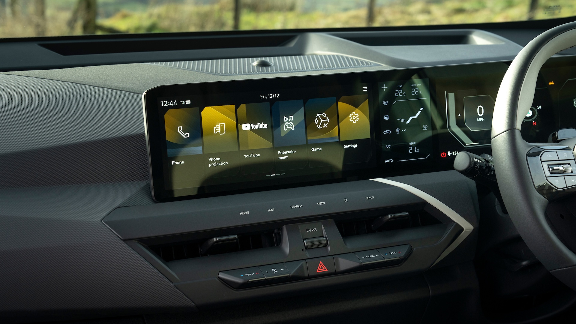 The infotainment screen is clear and easy to use, and the instrument display gives you all the information you need without looking too cluttered. Between the two is a slim climate screen, which should be a useful shortcut but is actually blocked by the steering wheel.