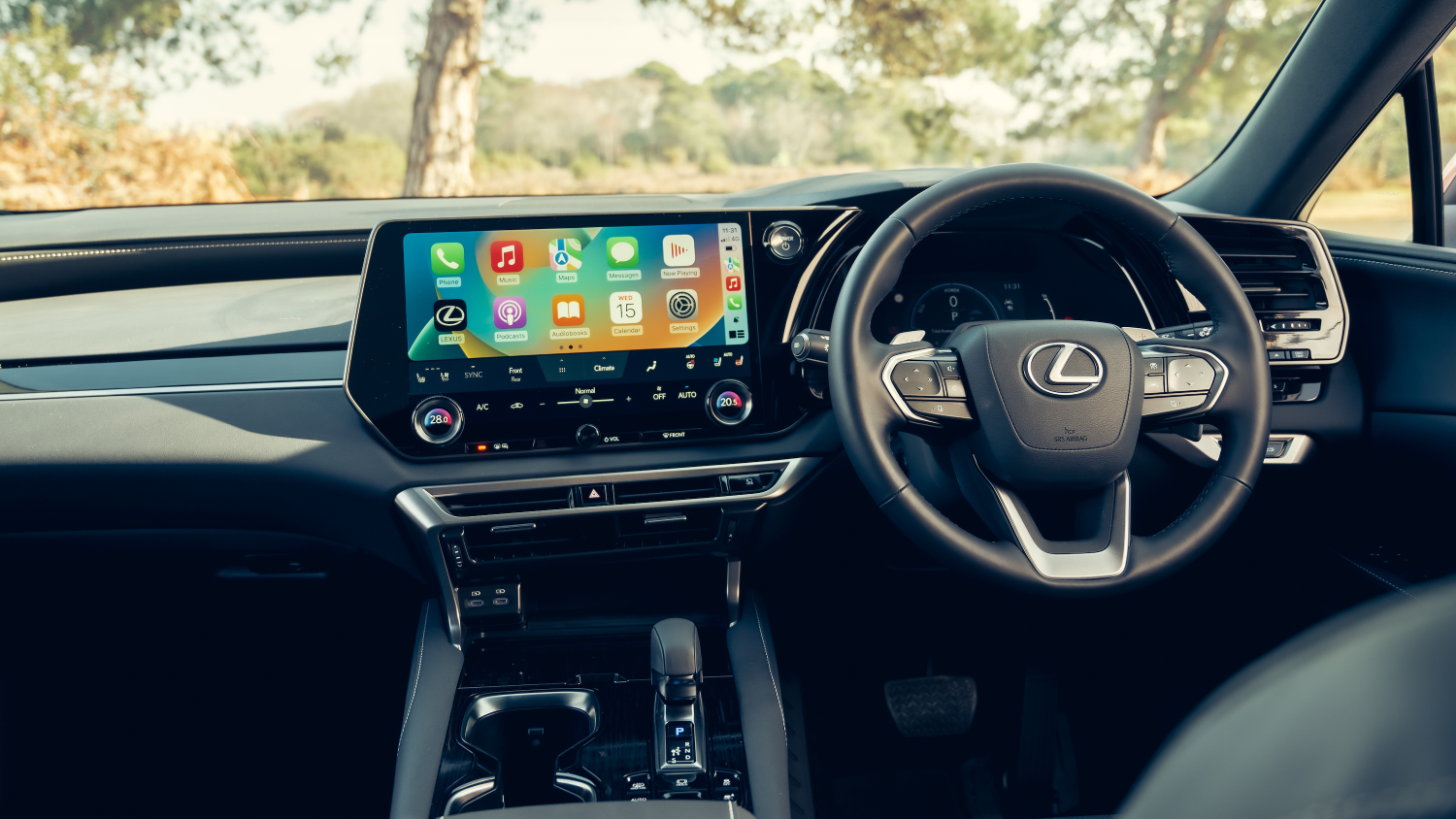 All versions of the RX get a 14.0-inch infotainment touchscreen, which has two dials either side for the climate control. The screen itself is bright and easy to use, but the user interface isn’t that great. The small menus when you’re navigating it are not located on the driver’s side, so when you’re driving, reaching that far can be a severe issue.